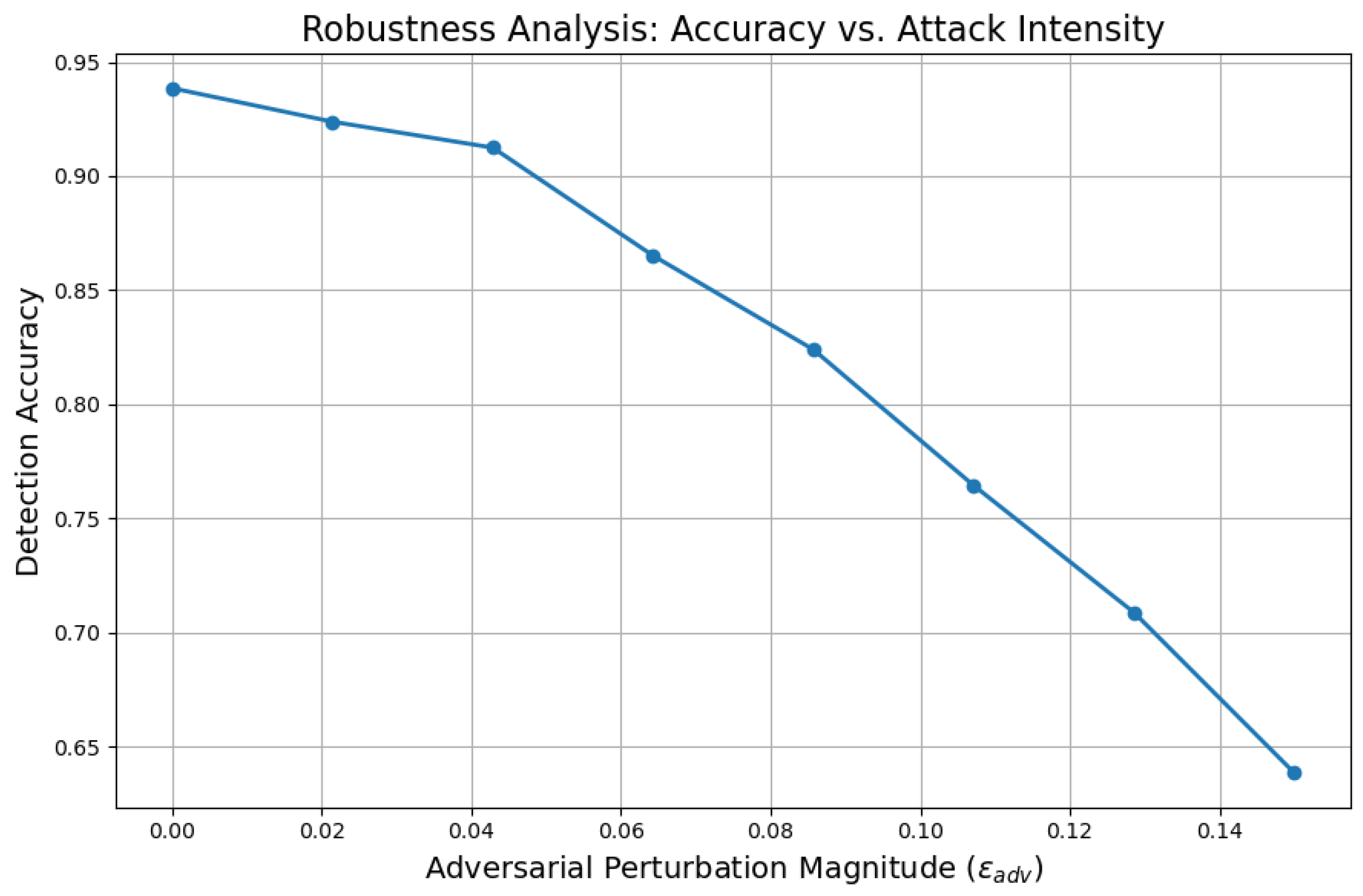 Scope of Adversarial Modeling: The current work adopts a uniform -bounded perturbation scheme inspired by the Fast Gradient Sign Method (FGSM), which offers computational efficiency and allows for the controlled evaluation of system robustness. However, we acknowledge that this formulation may not fully reflect more sophisticated or stealthy threat models encountered in real-world deployments, such as iterative attacks (e.g., PGD), optimization-based attacks (e.g., Carlini–Wagner), or generative adversarial attack frameworks. These methods can introduce perturbations with higher success rates while evading detection, particularly in adaptive or knowledge-aided threat landscapes.