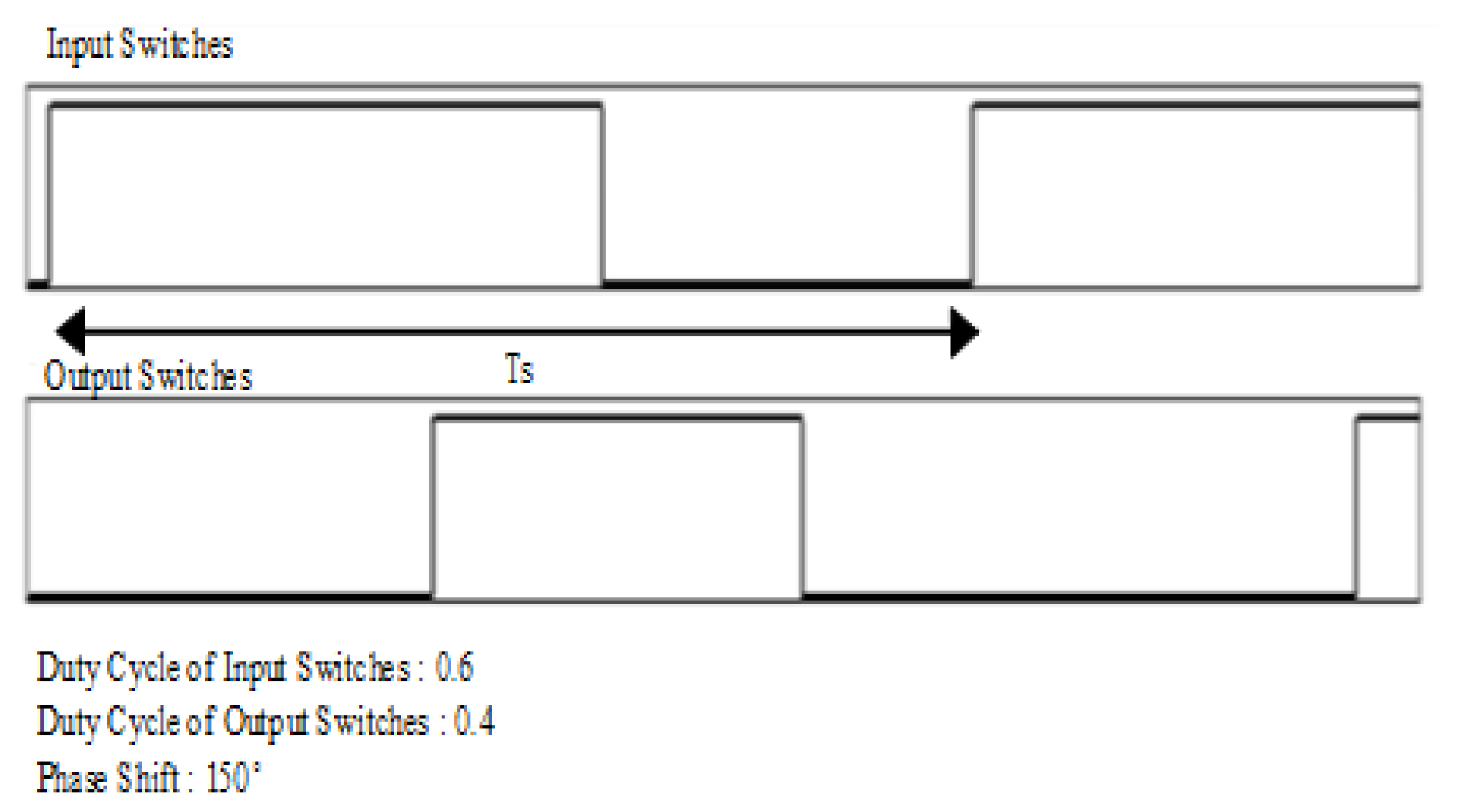 Figure 1b. The corresponding duty cycles for both the input and output switches are shown in