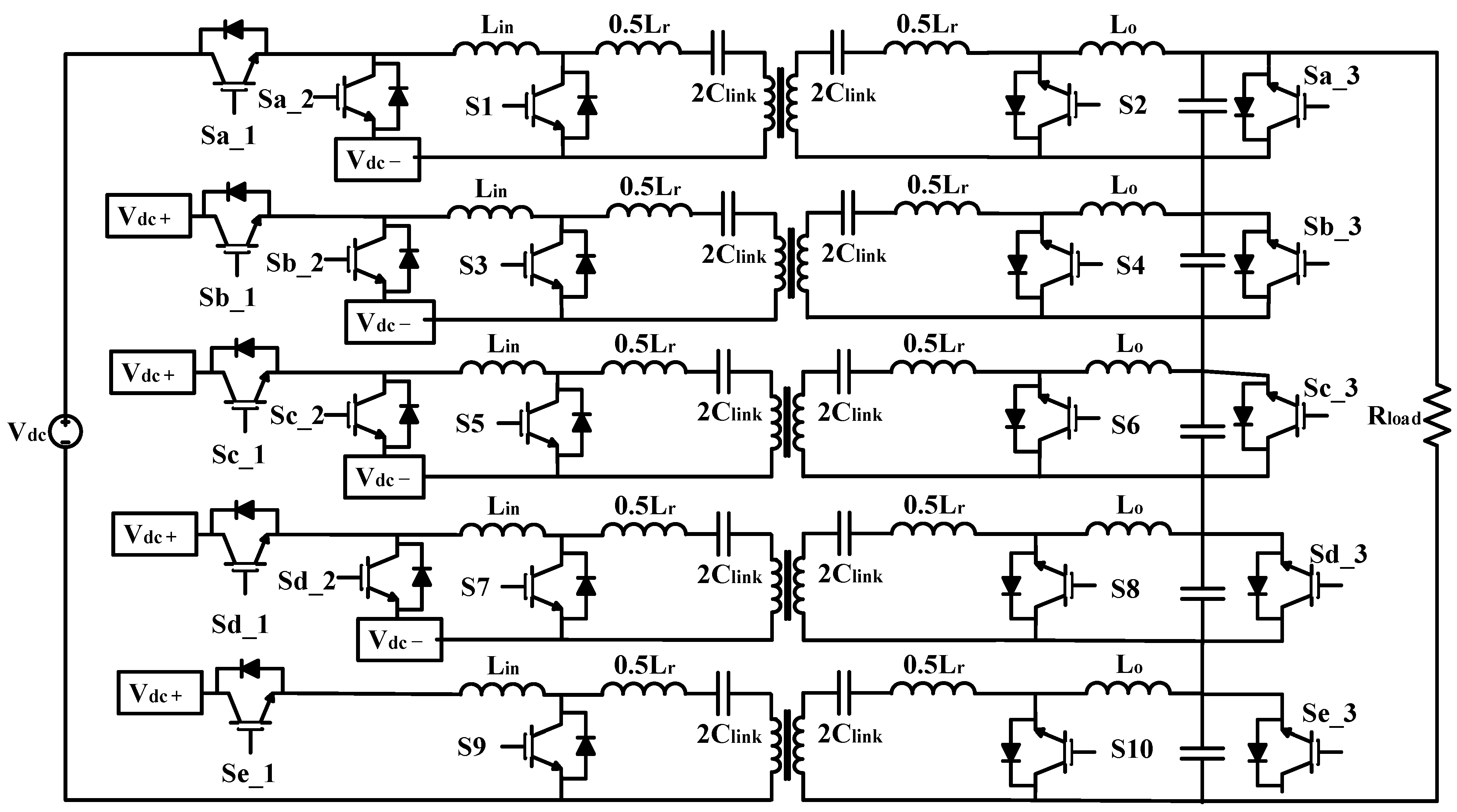 39] introduces a modular DC-DC converter for high-power applications, designed to use two small film capacitors in each power module for power transfer from the source to the load, as shown in