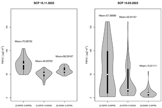 Figure 18. Violin plots of PM10 concentration during time intervals for two example SCP days.