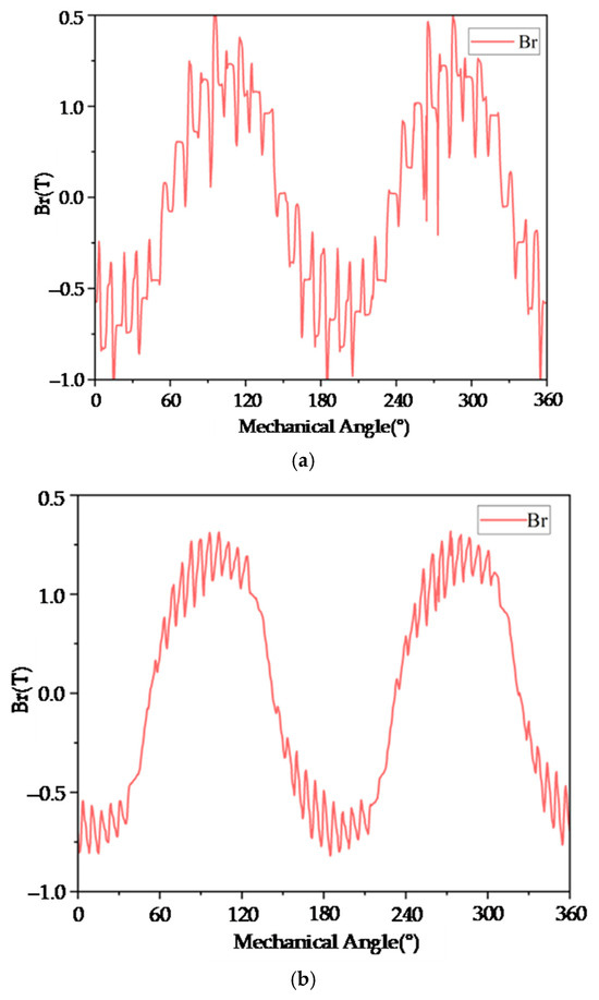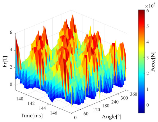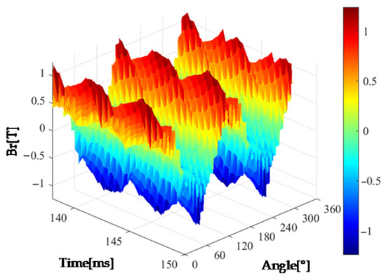 Substituting Equation (6) into Equation (2) yields the expression for the radial electromagnetic force wave generated by the air gap magnetic flux density: