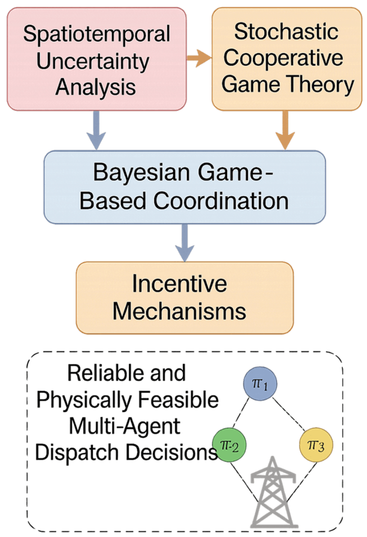 Figure 1 visualizes the streamlined system framework, where spatiotemporal uncertainty analysis and cooperative game strategies feed into Bayesian coordination and incentive mechanisms, ultimately yielding reliable and feasible multi-agent dispatch outcomes within a compact, bounded design. The framework is structured in four layers for clarity. (1)