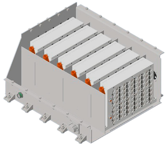 The FS vehicle’s battery pack comprises 528 Molicel P45B cells from company Molicel (Taipei, Taiwan, ROC), divided into six U-shaped modules. Each module consists of four parallels of 22 cells arranged in two layers, as shown in