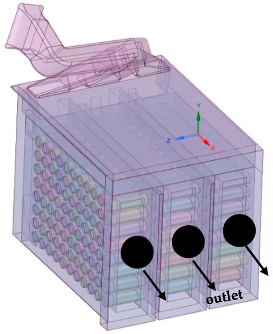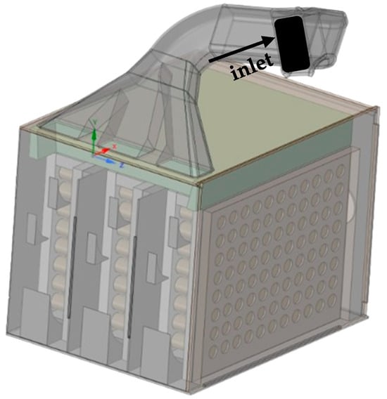 Figure 3. The entrance to the battery measured 263 mm in length and 46 mm in width, while the overall air intake had a height of 81 mm. The primary objective was to ensure uniform airflow across the modules, maintaining effective cooling while adhering to the pre-defined external constraints of the vehicle design.