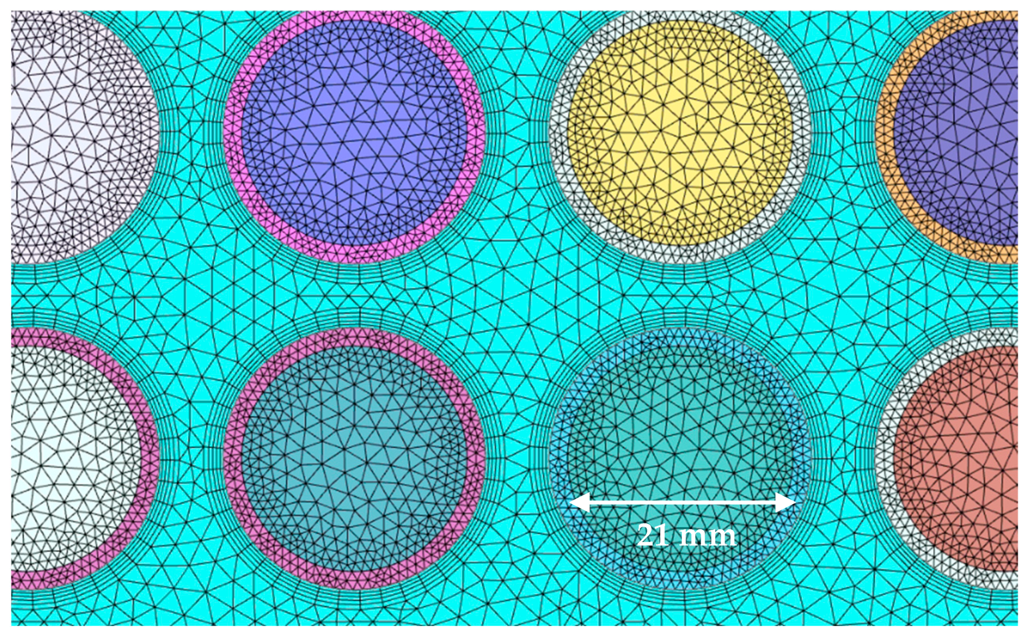 3. The thermal source term, representing heat generation within each cell, was applied uniformly across all 264 cells in the model. This setup ensured that the simulation accurately reflected the consistent heat flux produced by each cell during operation.