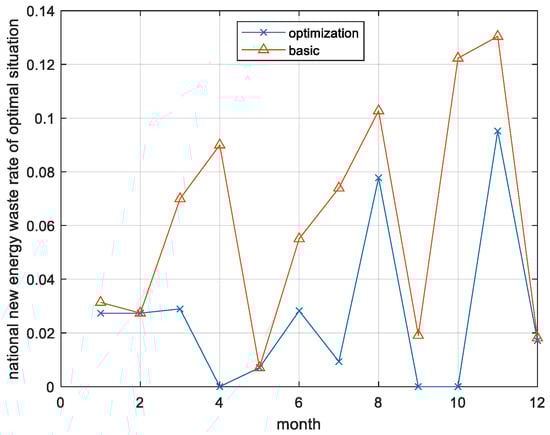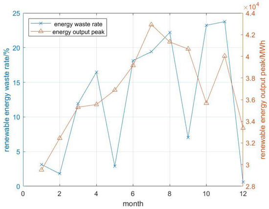 Renewable energy waste rate and output in each month.