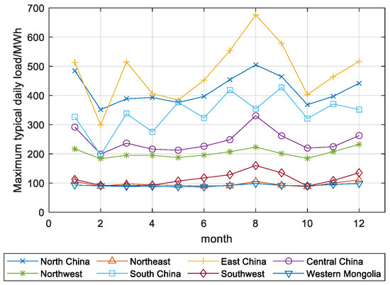 Maximum typical daily load in each month.
