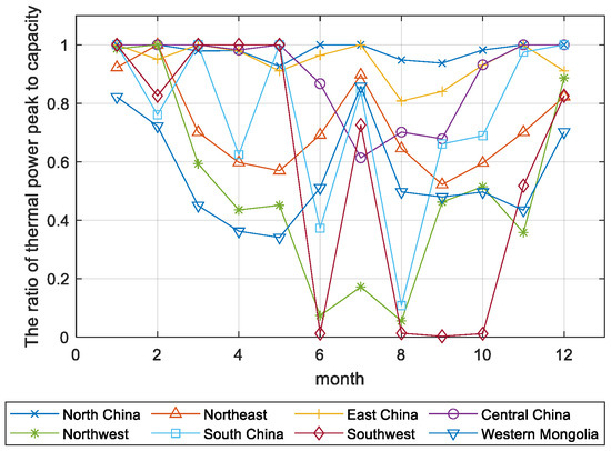 Figure 2 shows the peak period of renewable energy waste is October, November, and March, the unique factor of this period is the heating demand, which keeps the thermal power generation at a certain level. However, compared with the same heating demand in December, January, and February, the renewable energy abandonment rate is higher during these months.