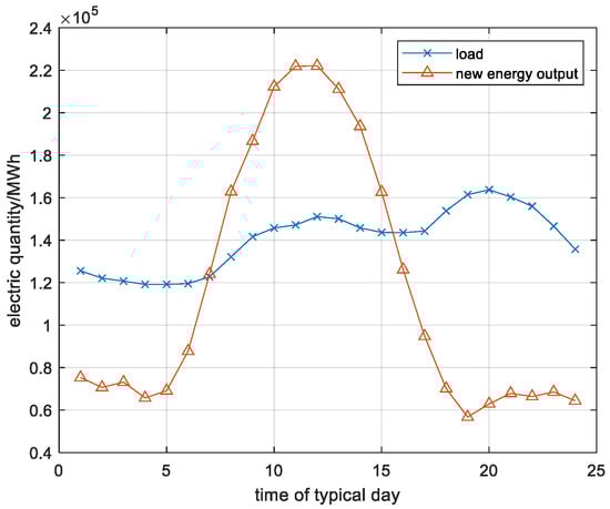 To consider the power balance of the power system at different time scales, the hourly variation in power generation and load demand of the power system over 1 year was modeled. To reduce the burden of calculation and data collection without losing seasonal fluctuation characteristics, typical working days and rest days are selected from each month for simulation.