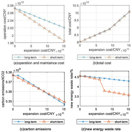 However, China’s power system is facing dual challenges, including increases in power demand, due to rapid economic development and transformation of energy electrification, and the need for low-carbon transformation of the energy structure to help mitigate the climate change. Considering the significant differences in carbon emission intensity between various power generation technologies, increasing the proportion of renewable energy installed capacity is generally considered to be an effective method for the low-carbon transformation of power systems [2,3,4,5]. However, the rapid growth of renewable energy installed capacity has introduced new problems to power system planning. The uncertainty of renewable energy and the seasonal characteristics of output challenge the stable operation of power systems [6]. Additionally, radical renewable energy expansion has led to the problem of significant renewable energy waste [7]. Therefore, planning the expansion of the power system for efficiency, stability, low costs and reduced carbon emissions has become a research hotspot.