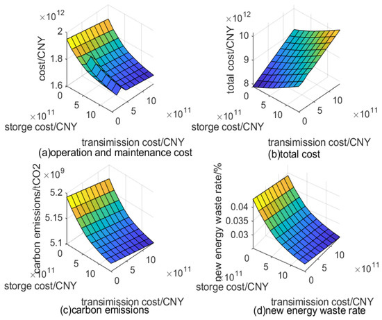 The characteristics of wind energy and photovoltaic power generation show obvious seasonal and intraday changes, which are not consistent with the load fluctuations. Therefore, it is necessary to develop an energy storage system that promotes the consumption of renewable energy. In recent years, long-term energy storage technologies, such as pumped hydro storage (PHS), hydrogen-based energy, and compressed air energy storage have attracted increasing attention. By 2025, the combined installed and under-construction capacity of pumped storage is expected to reach more than 120 million kilowatt hours [34]. Considering that the model performs a one-year long operation simulation, it is necessary to distinguish long-term and short-term energy storage. Given that long-term energy storage technologies, except for pumped storage, have not been widely implemented in China [30], this study considered only pumped storage as the long-term energy storage method.
