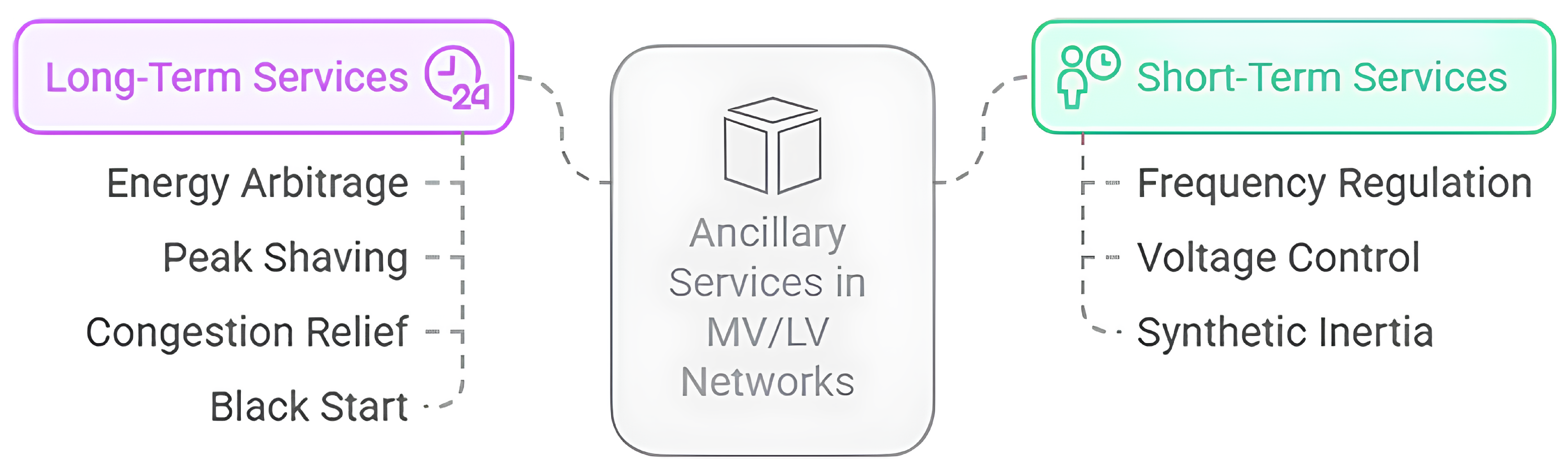 Ancillary services in MV/LV contexts are critical for maintaining power quality and operational stability. As shown in