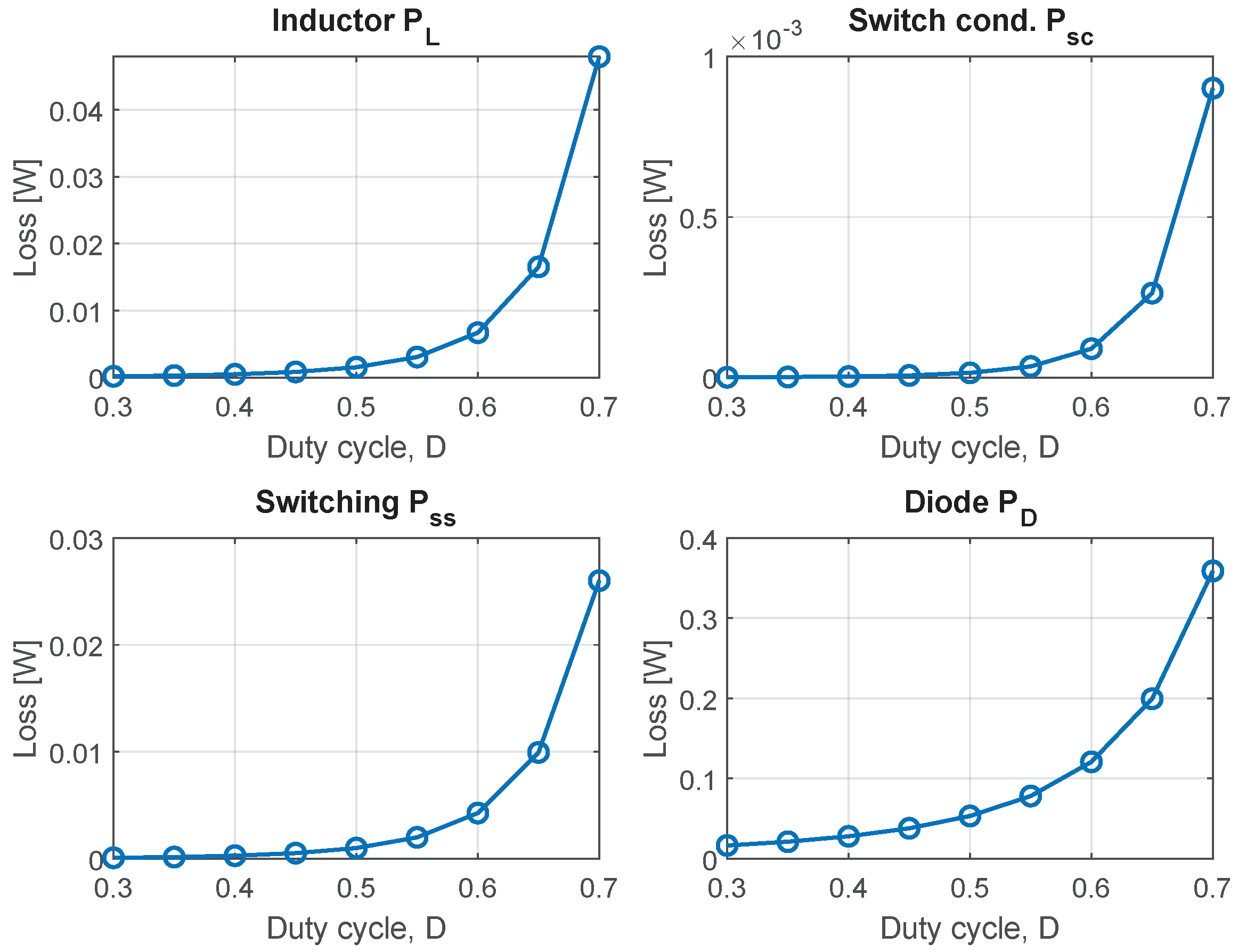 (forward conduction loss in the diodes) only; omitted mechanisms such as core/AC copper losses,