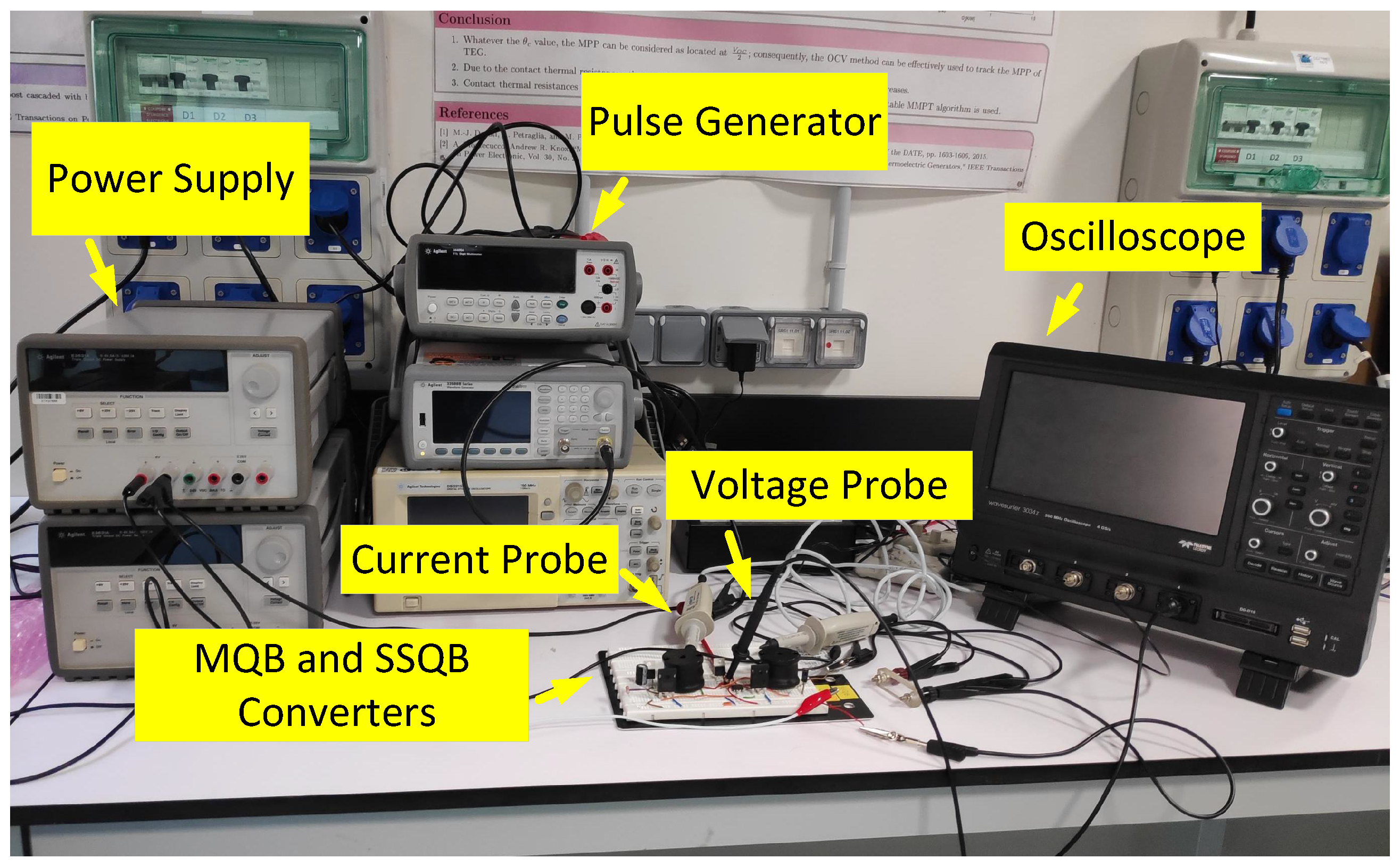 7.2. Experimental Results for Modified Quadratic Boost Converter (MQB)