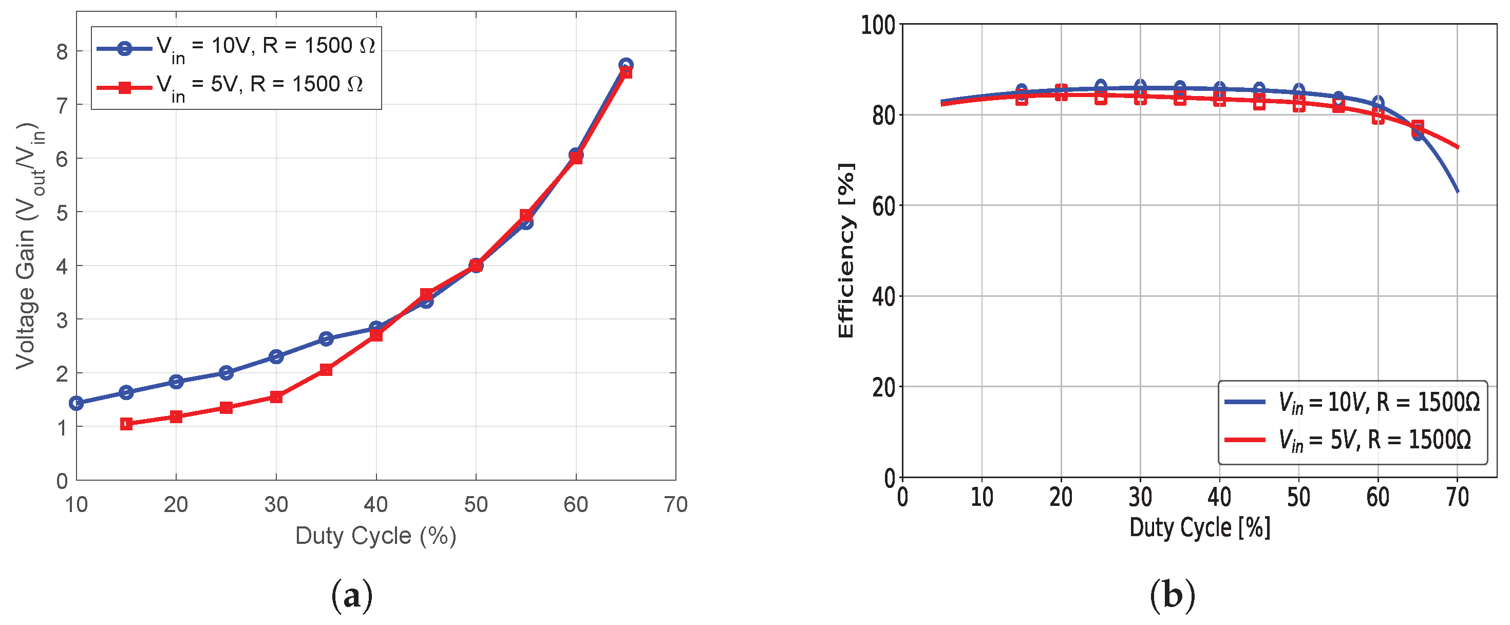 7.5. Measured Efficiency and Voltage Gain of the SSQB Converter