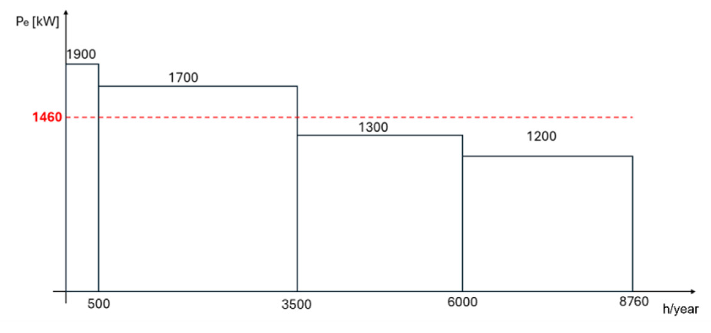 The industrial facility requires a dual supply of electricity and thermal energy. The thermal unit must be delivered at diverse temperature levels to fulfill requirements for heating and process steam. The electrical load duration curve of the facility is depicted in