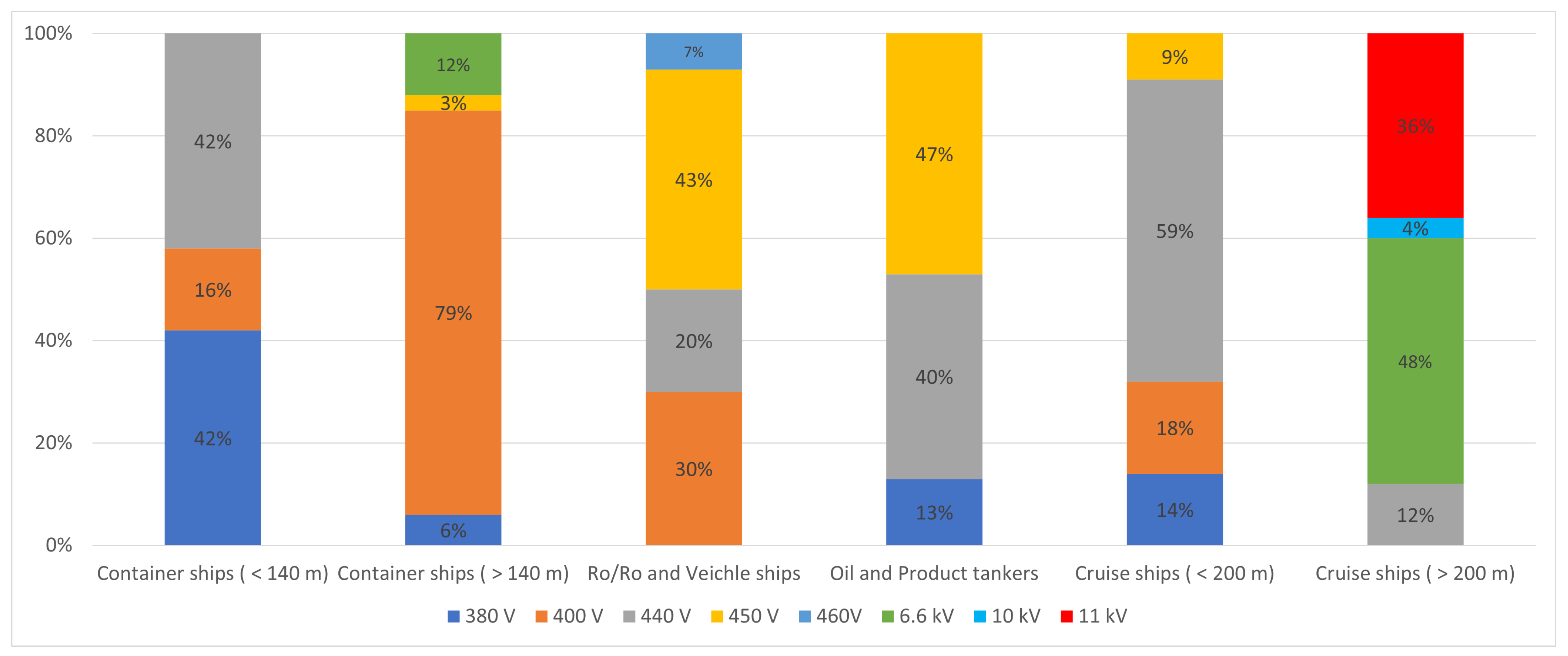 Cruise ships ( m) | 7500 | 11,000 | 9500 | – | 100% |
