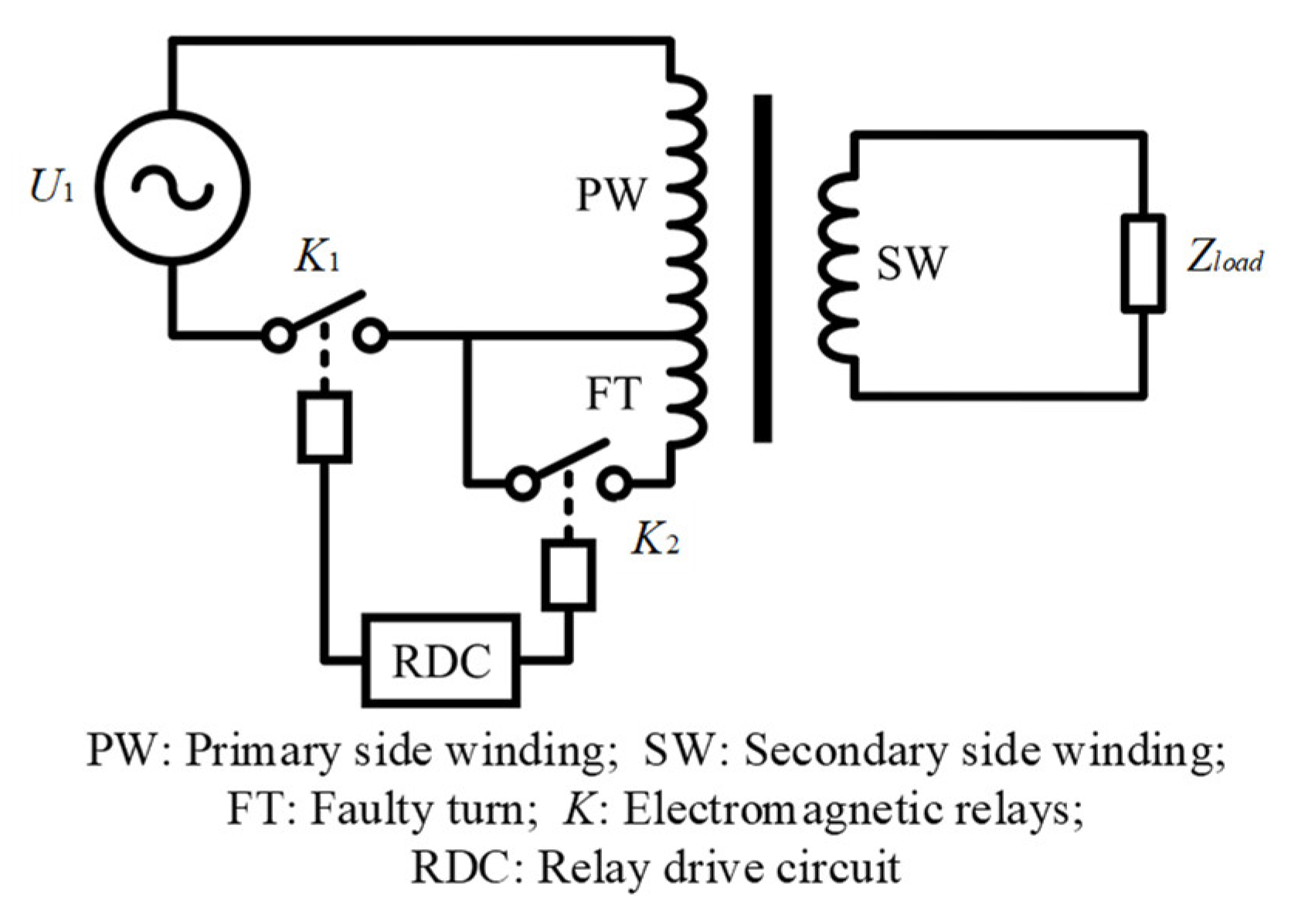 - In current full-scale prototype experiments, the substantial short-circuit currents circulating within the fault loops may cause irreversible damage to experimental transformers. Consequently, safety protocols typically require series-connected current-limiting resistors in short-circuit windings or voltage reduction to control fault current magnitudes. However, these modifications significantly deviate from actual inter-turn short-circuit operating conditions, thereby compromising the accurate characterization of transformer behaviors under such faults.