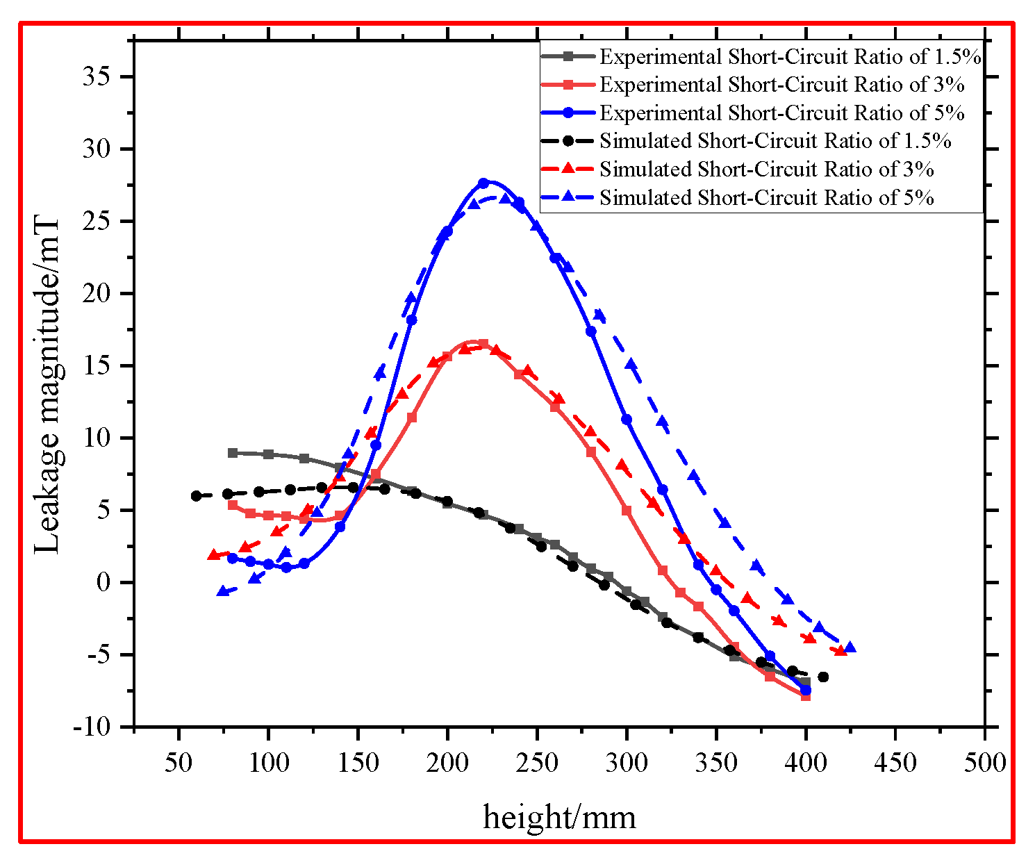 - Wu, Y.; Lin, J.; Ji, T.; Pan, Q.; Huang, S.; Wang, W.; Liu, S.; Jin, Y. Study on Leakage Magnetic Characteristics under Inter-Turn Short Circuit Fault of Transformer. In Proceedings of the 2024 IEEE PES 16th Asia-Pacific Power and Energy Engineering Conference (APPEEC), Nanjing, China, 25–27 October 2024; pp. 1–4. [Google Scholar] [CrossRef]