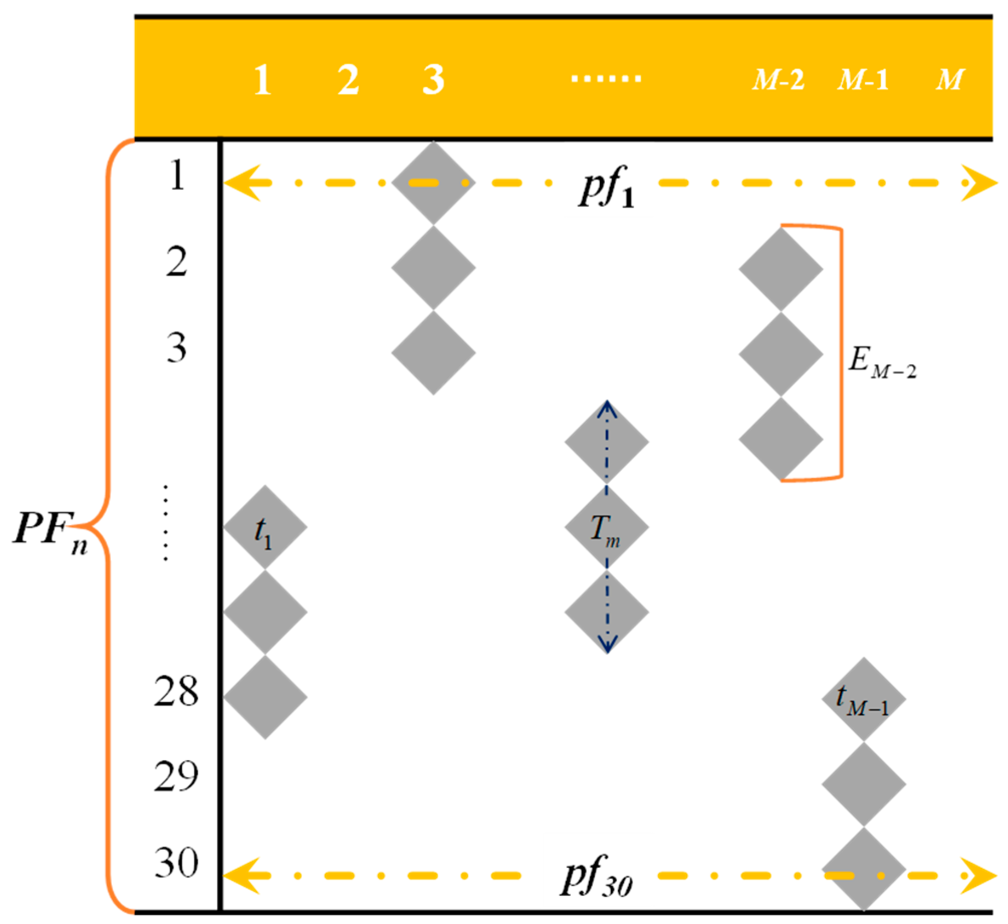 Figure 5a illustrates the initial maintenance plan. The horizontal axis represents equipment IDs, and the vertical axis denotes dates within calendar months. As can be seen in the figure, all equipment outages in the original plan were concentrated at the beginning of the month, indicating significant resource congestion and operational risk.