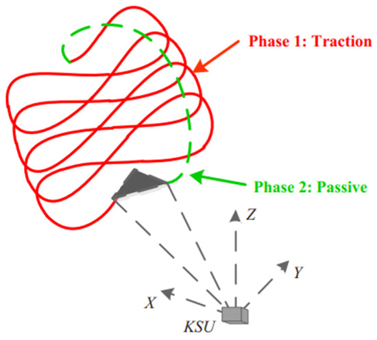 This paper assumes that the tether connection point to the aircraft is located at the center of mass of the aircraft. For the tether, when the ratio of the tether tension to the tether’s gravity and aerodynamic force is high, the tether can be considered to be in a fully extended state. The force applied by the tether to the aircraft’s center of mass can be decomposed into the tether’s gravity , the aerodynamic force acting on the tether, and the tether tension :