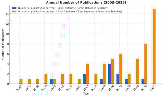 The contrast between the initial and expanded databases also highlights a methodological point: without document-level searches, a considerable share of relevant studies remains invisible. This methodological discrepancy emphasizes the importance of adopting comprehensive bibliometric strategies to avoid biased interpretations of research evolution.