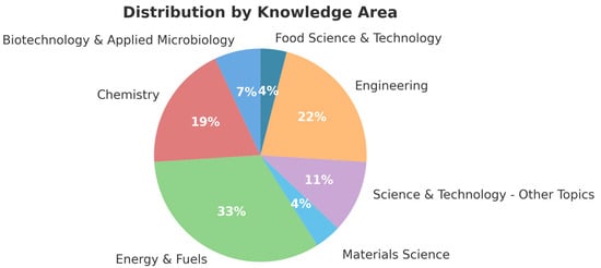 Figure 2 displays the distribution of studies by research area. Unsurprisingly, Energy & Fuels dominates (33%), followed by Engineering (22%) and Chemistry (19%). These areas collectively reflect the dual technical challenge of (i) designing scalable processes for enzymatic catalysis and (ii) managing the chemical complexity of heterogeneous waste oils, often with high free fatty acid (FFA) content. However, smaller yet relevant shares in Food Science & Technology (11%), Materials Science, and Biotechnology (4% each) reveal a growing interdisciplinary engagement.