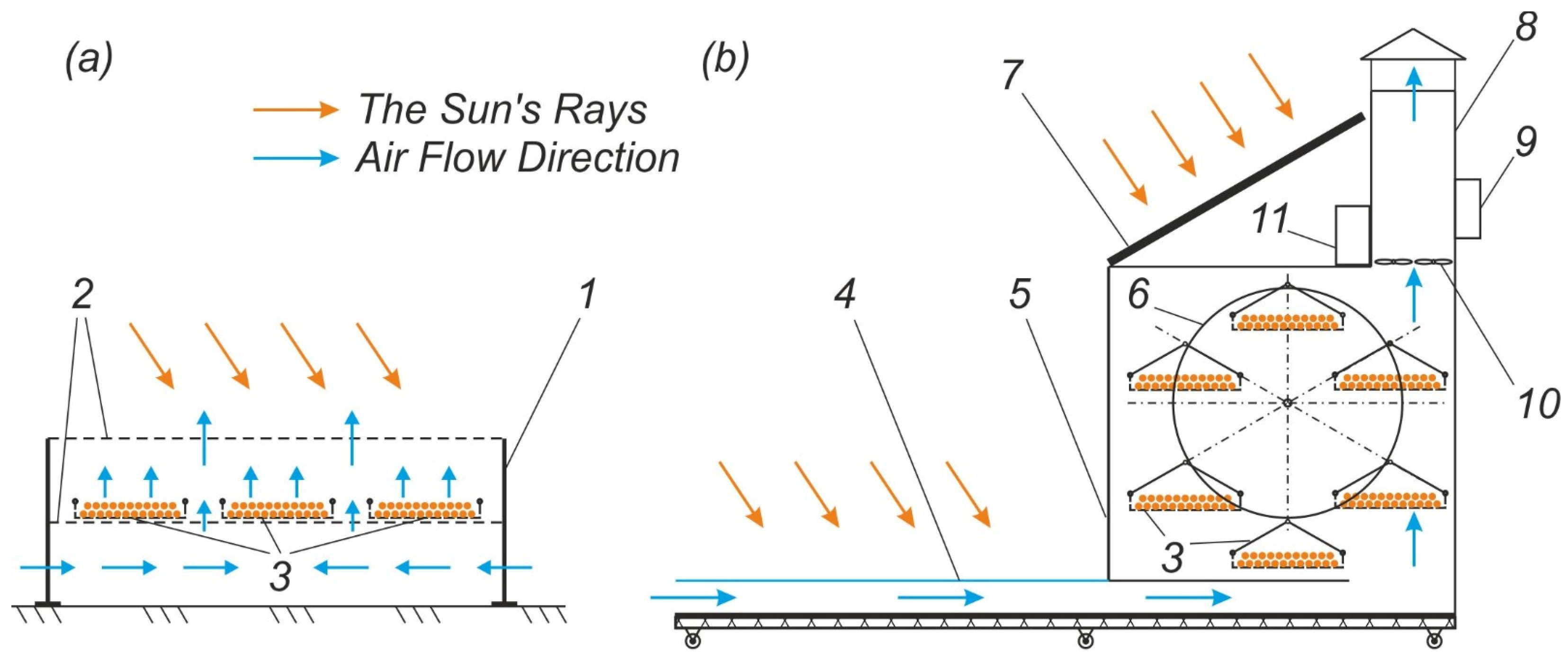 • Developed Solar Dryer: An active solar-driven drying system (Figure 1b).