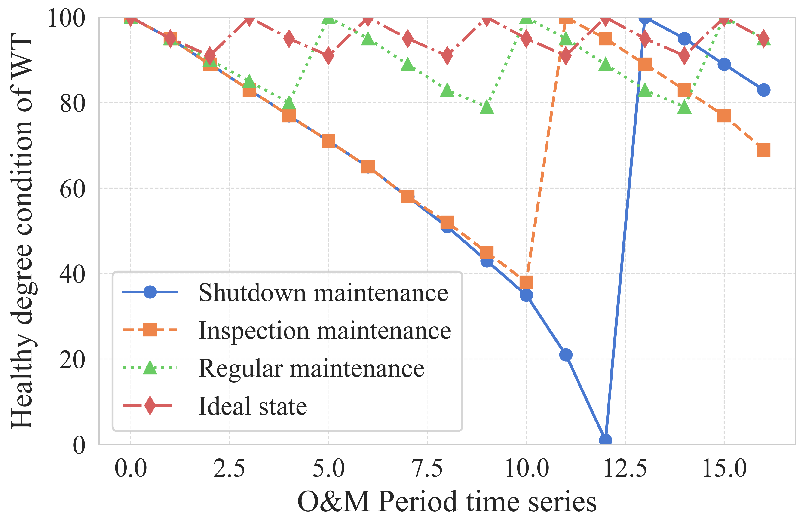 Due to the harsh environments in which wind turbines (WTs) operate, failures occur frequently, resulting in a heightened demand for operation and maintenance (O&M). Traditional O&M strategies, including shutdown, inspection, and regular maintenance, affect the health condition of WTs in varying ways [