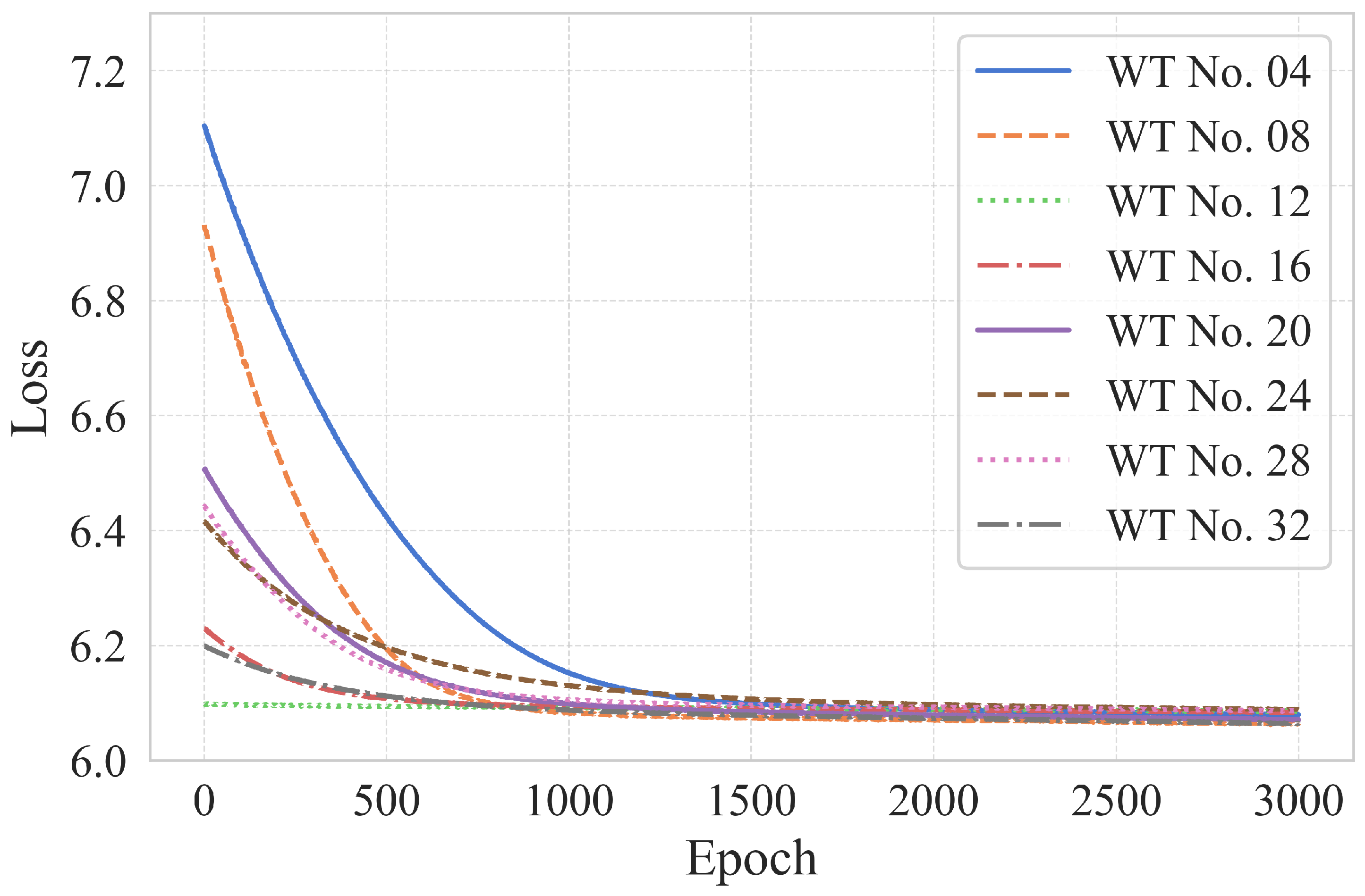 The limitation lies in the requirement for a large amount of data and generalization in the application of methods for different wind turbines and operating conditions. In addition, we have found that the decline modes of the main shaft bearing and generator follow a pattern similar to that of gearbox. Therefore, such similar degradation trends suggest the method’s potential for extension to other subsystems in future research. At the same time, to apply the method in industrial real-world scenarios, improving computational efficiency and reducing computational costs while maintaining excellent condition monitoring performance will also be an objective of future efforts.