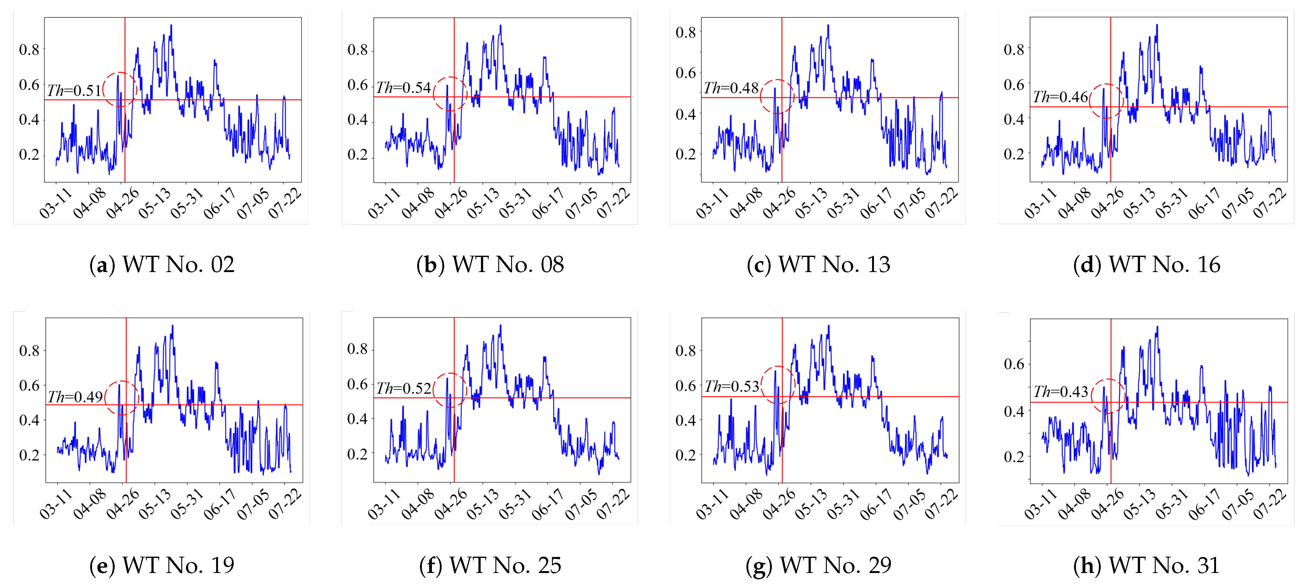 In the process of CM, the operating condition of the WT gearbox at that moment is deemed abnormal if the HI exceeds the corresponding Th. Therefore, the existing issues must be investigated before any continued operations.