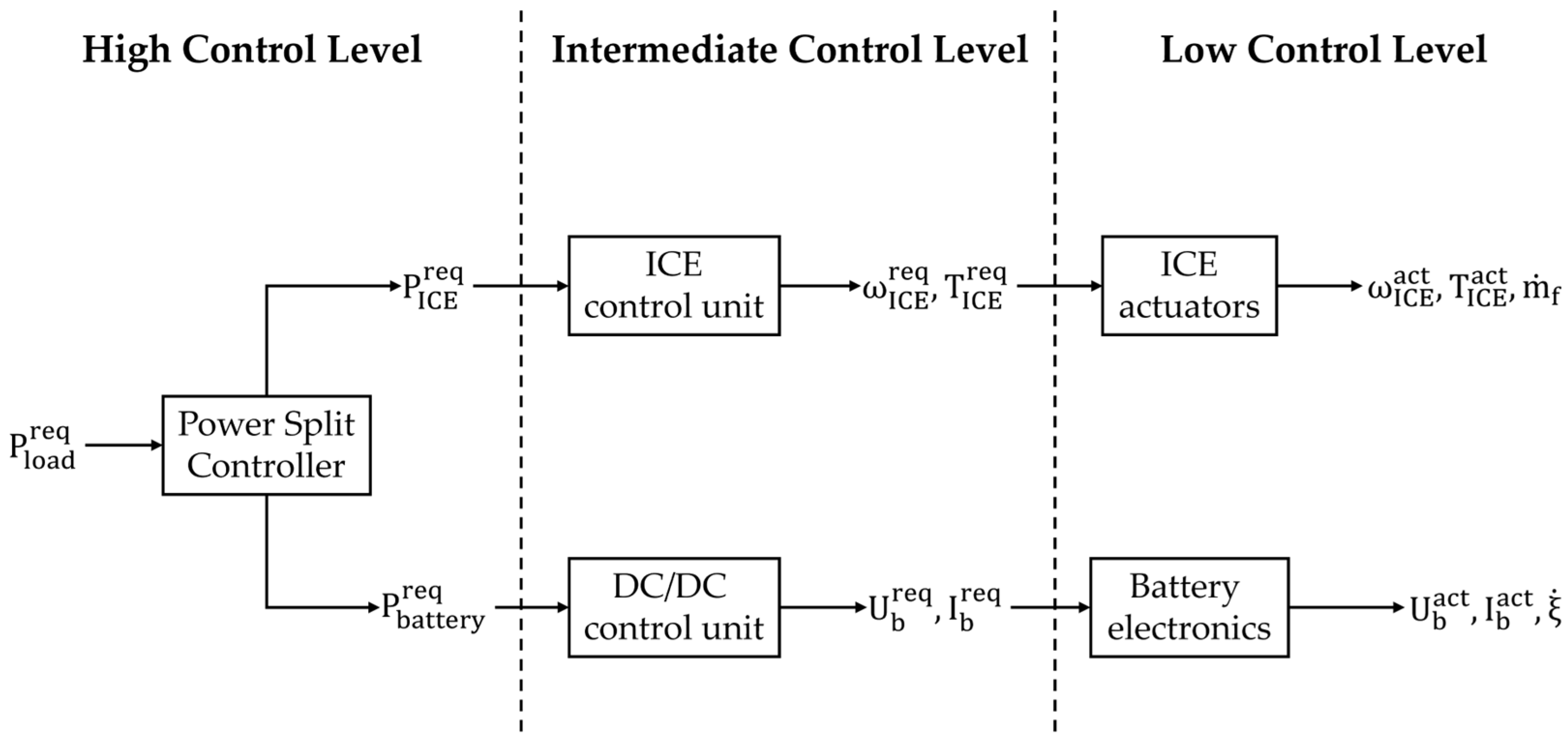 - Low control level: it involves the actuators for the ICE and the battery, actuating the required component parameters.