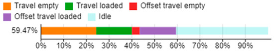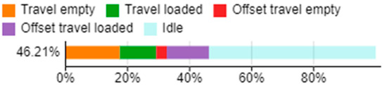 The average utilization level of all forklifts involved in the analyzed production process was 59.47%, which is more than 8 percentage points higher compared to the variant including electric and combustion forklifts (Figure 11).