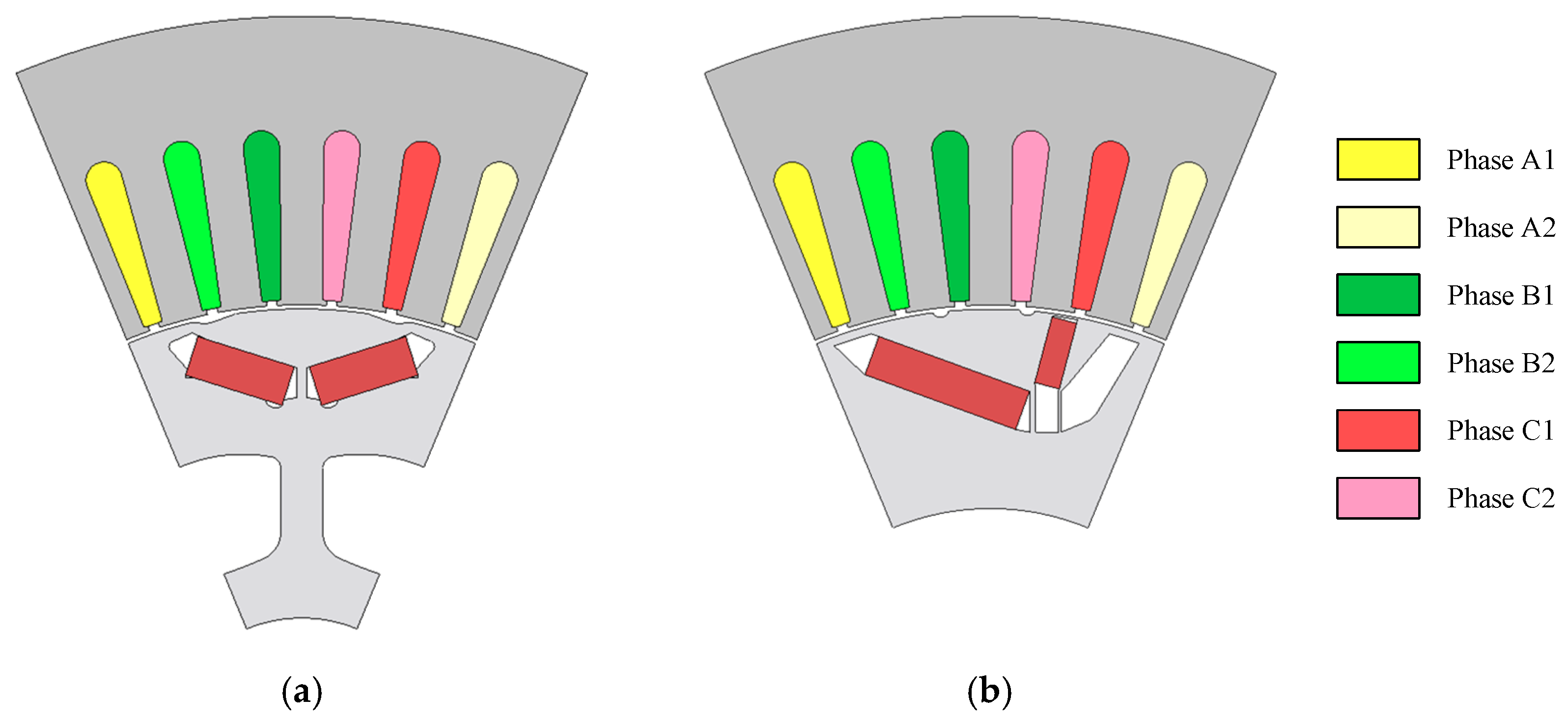 The prototype DTP PMSMs in this paper are modified from the STP PMSMs in [