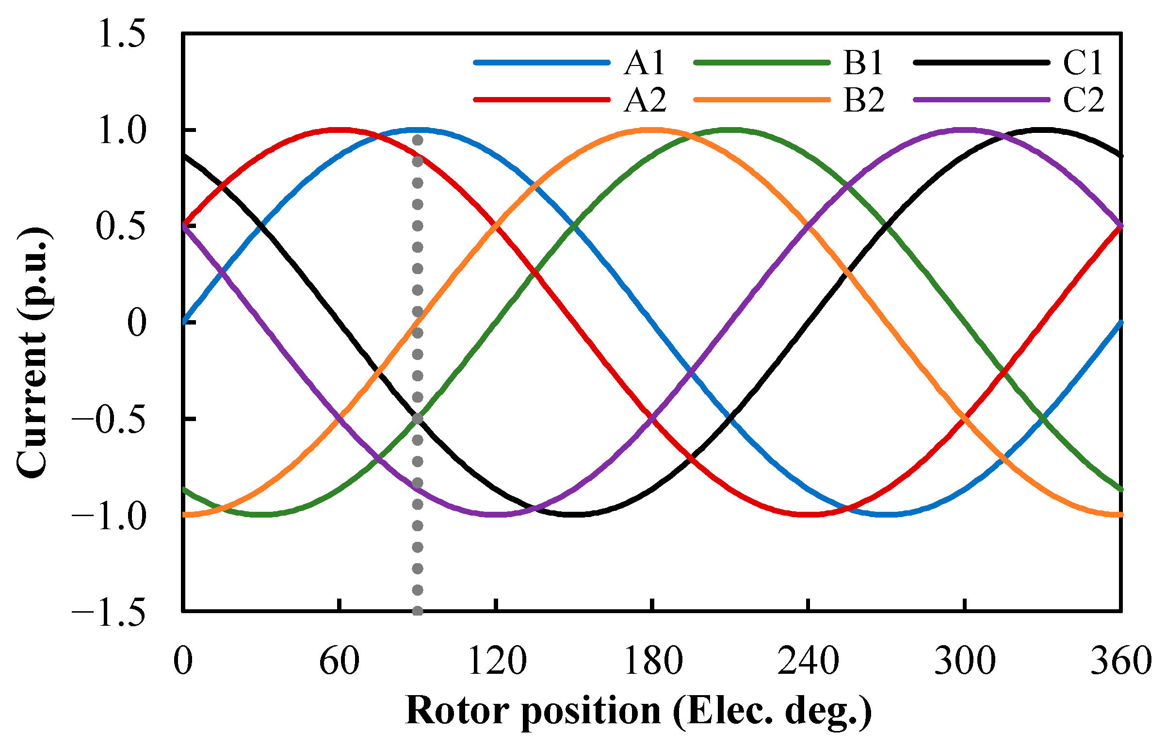 q), and phase currents (I