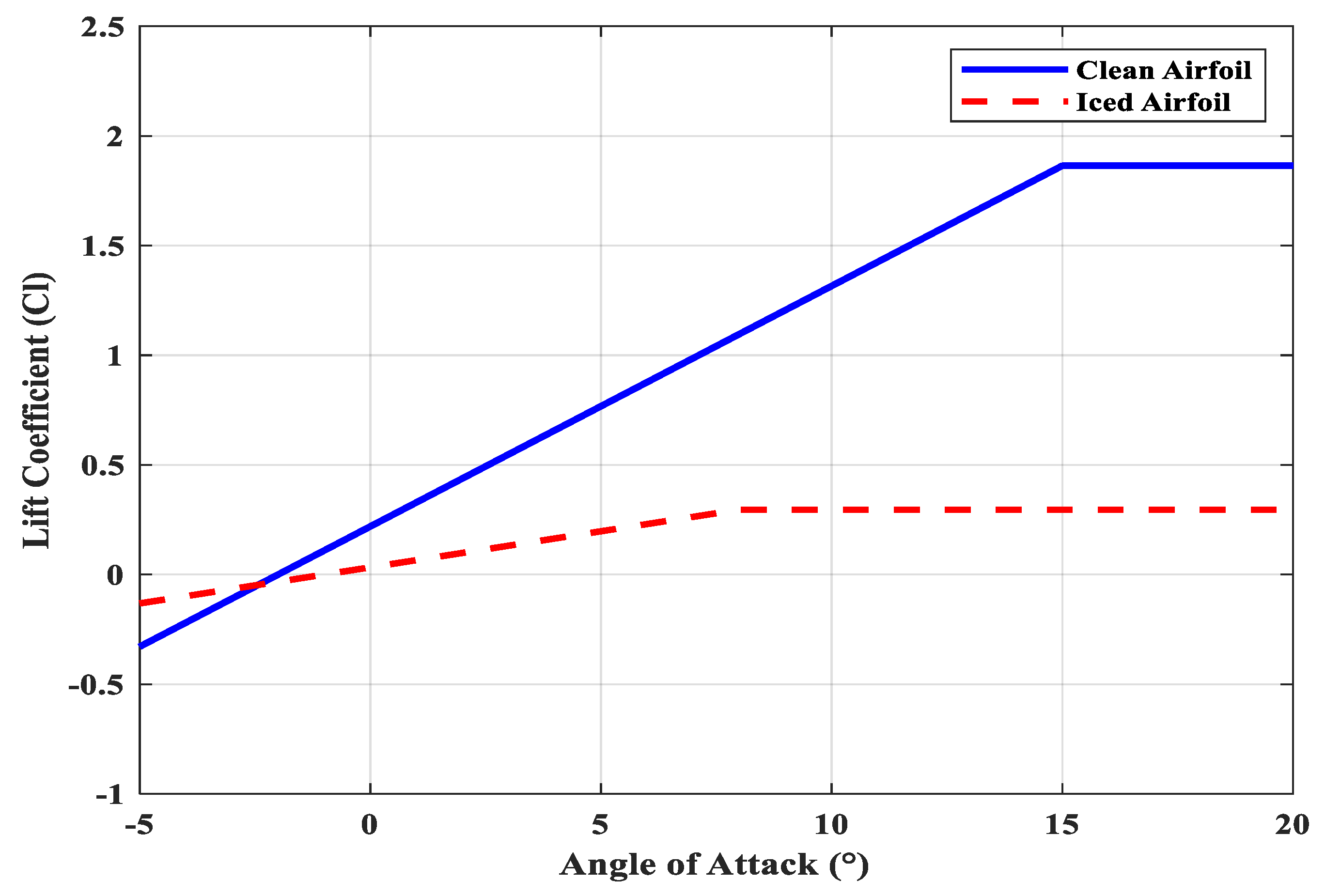 4.2. Modeling the Impact of Ice Accretion on Lift and Stall Performance