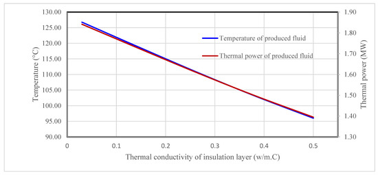Effect of insulation layer’s thermal conductivity on the temperature and thermal power of the produced fluid.