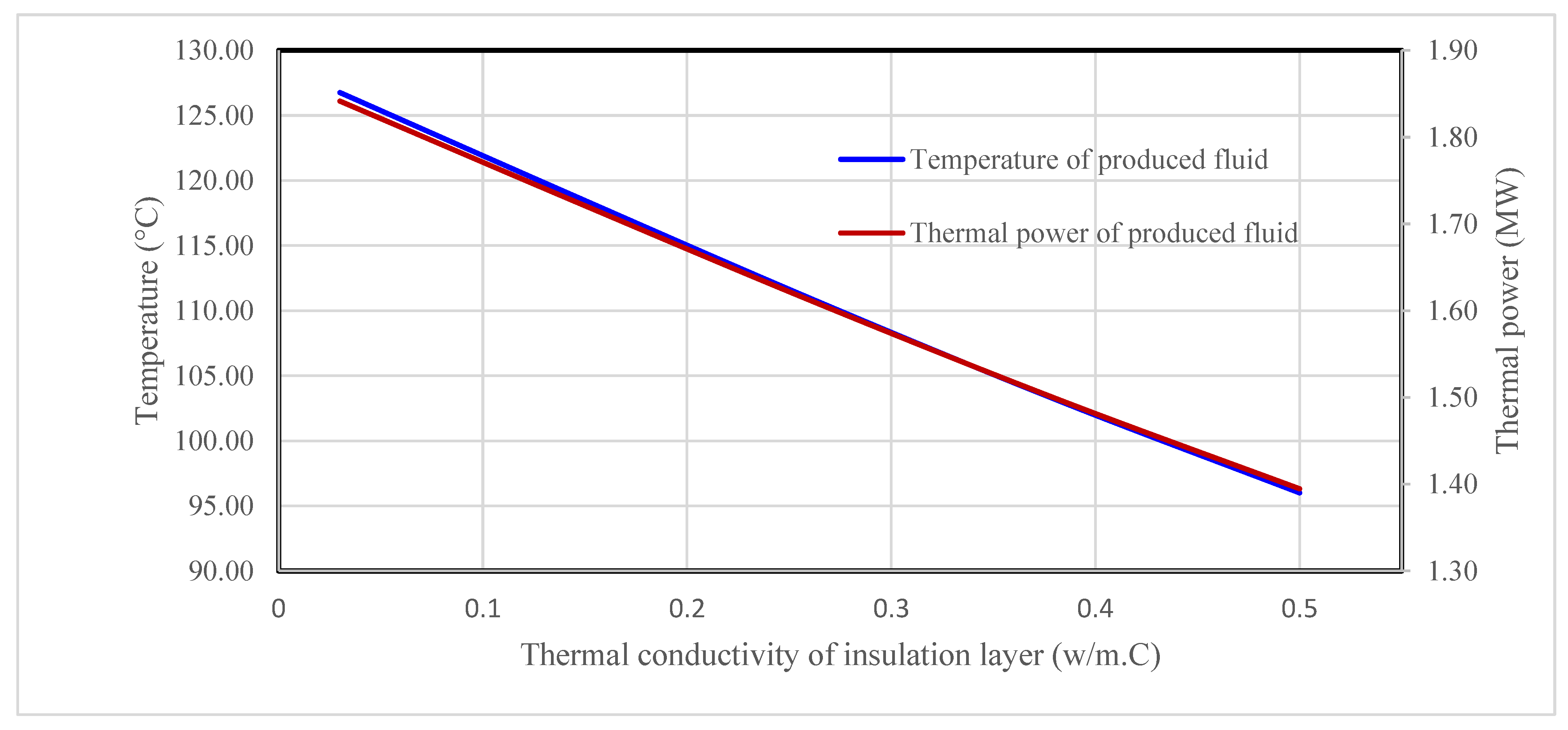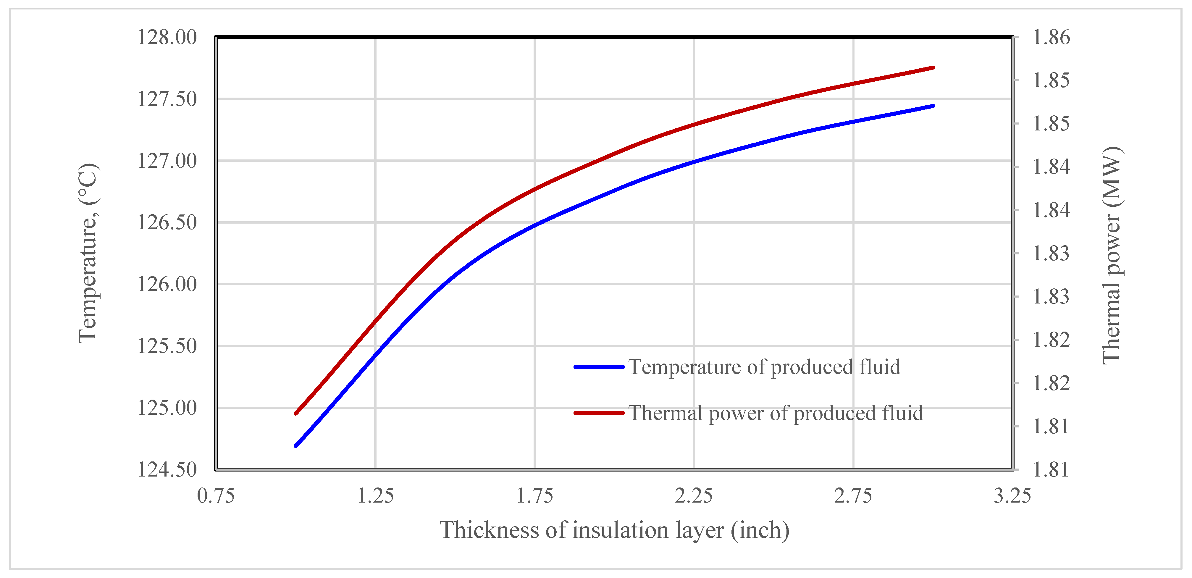 - Insulation of the fluid production wellbore is necessary to reduce heat loss back to the formation rock. Reducing thermal conductivity and increasing the thickness of the insulation layer will effectively cut down the heat loss. Both the temperature and thermal power of the produced fluid will be enhanced by wellbore insulation.