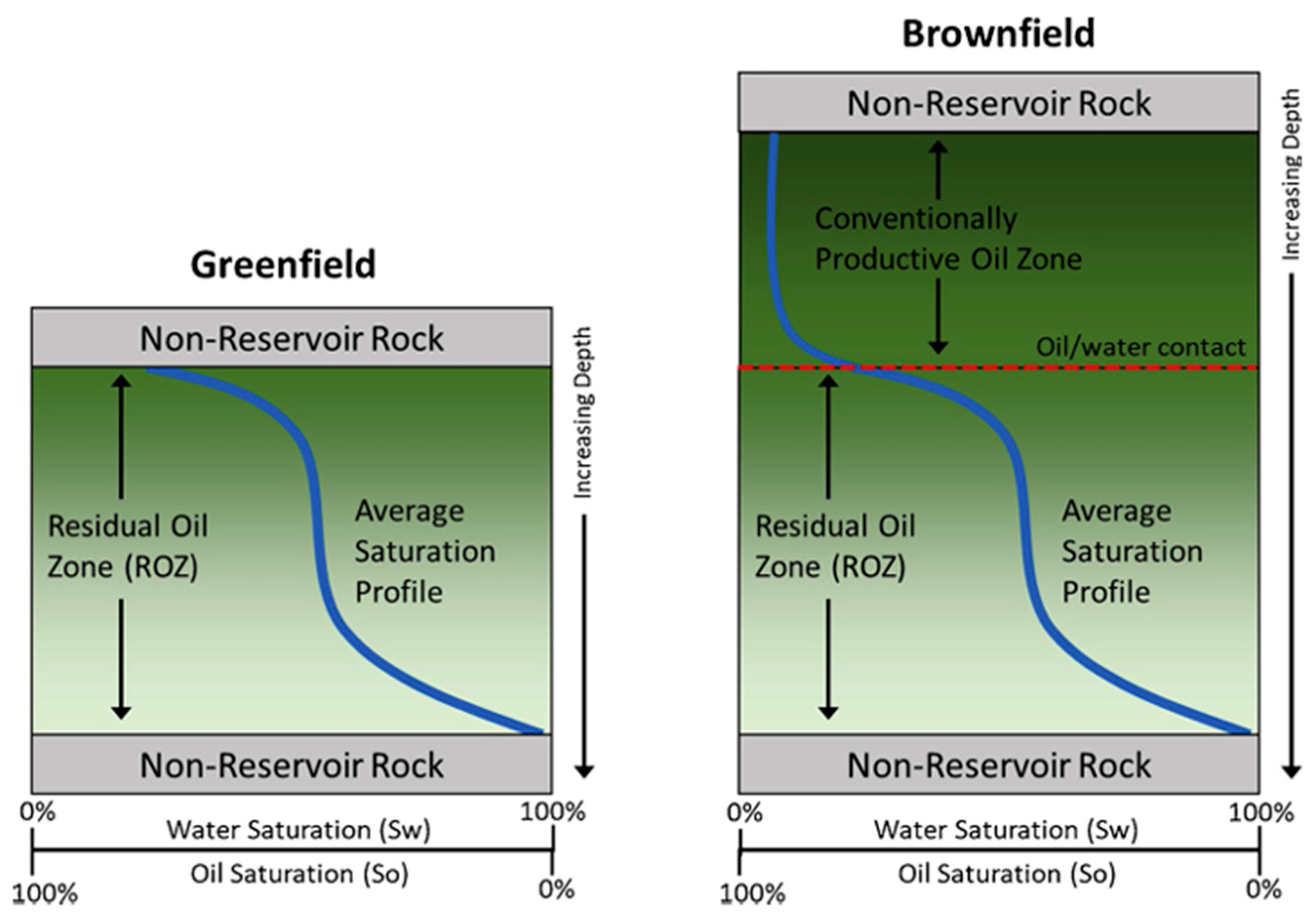 - Ren, B.; Duncan, I. Modeling oil saturation evolution in residual oil zones: Implications for CO2 EOR and sequestration. J. Pet. Sci. Eng. 2019, 177, 528–539. [Google Scholar] [CrossRef]