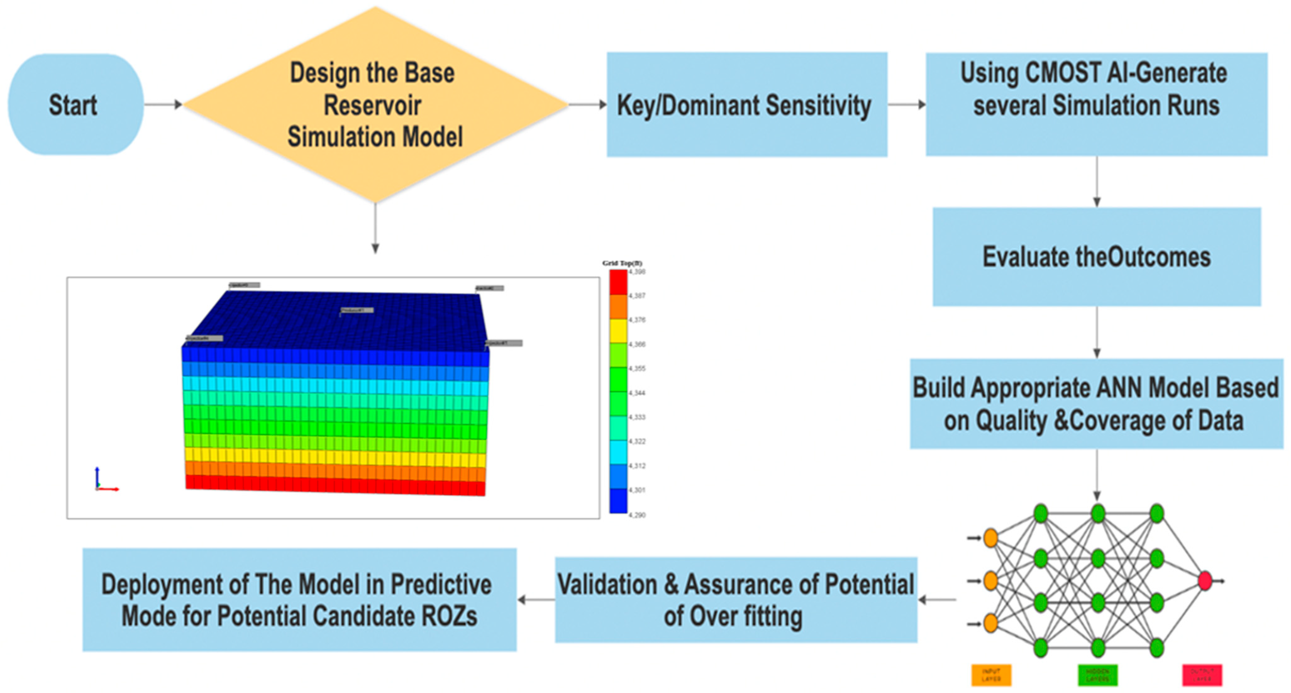 - Develop a proxy predictive model to predict the performance of CO2-EOR-CCUS using machine learning techniques to provide rapid screening and evaluation of the injection performance.