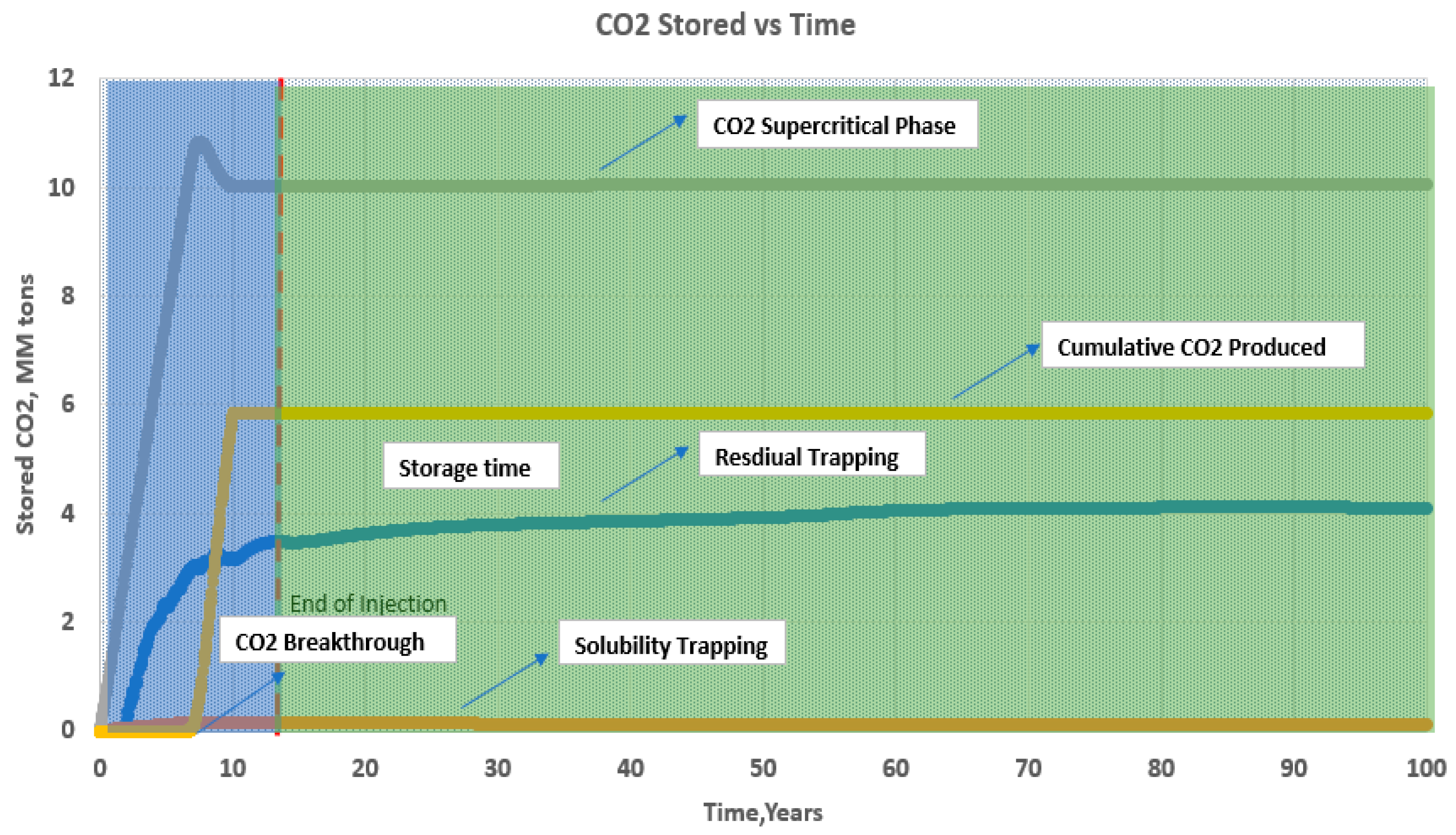 - Evaluate the CO2 injection as EOR and CCUS in ROZs in terms of Cumulative oil Production, Cumulative CO2 injection, and retained CO2 injection in each phase;