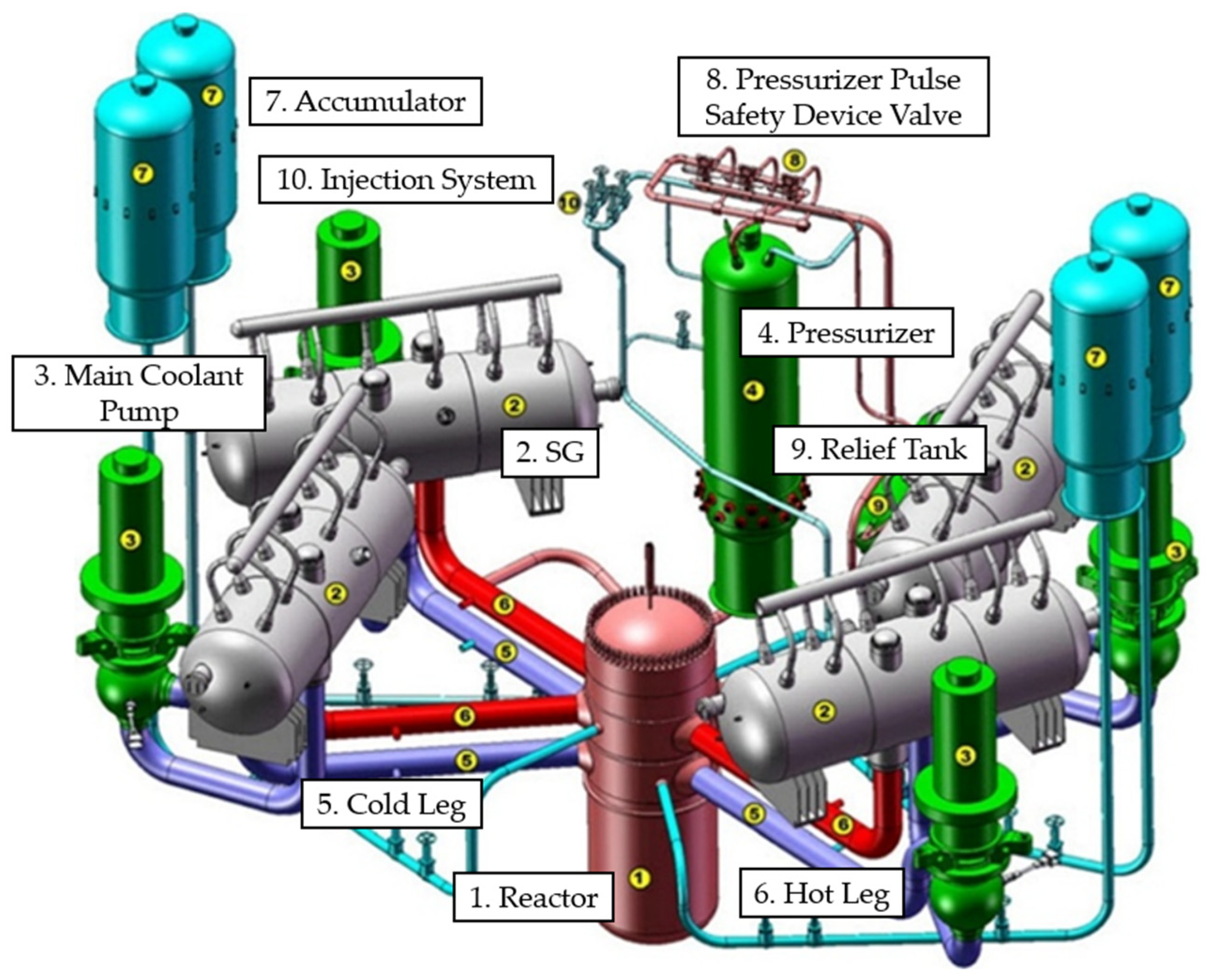 - Tabadar, Z.; Aghajanpour, S.; Jabbari, M.; Khaleghi, M.; Hashemi-Tilehnoee, M. Thermal-Hydraulic Analysis of VVER-1000 Residual Heat Removal System Using RELAP5 Code, an Evaluation at the Boundary of Reactor Repair Mode. Alex. Eng. J. 2017, 57, 1249–1259. [Google Scholar] [CrossRef]