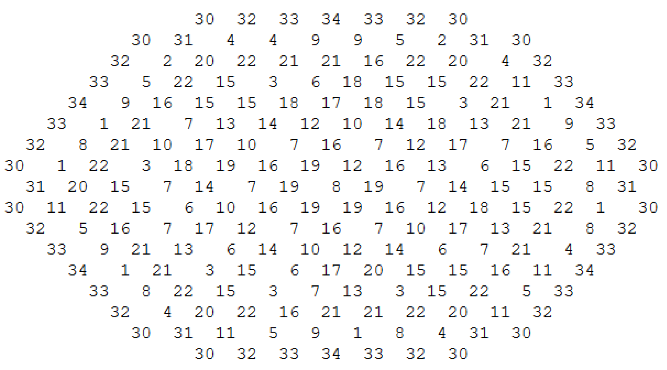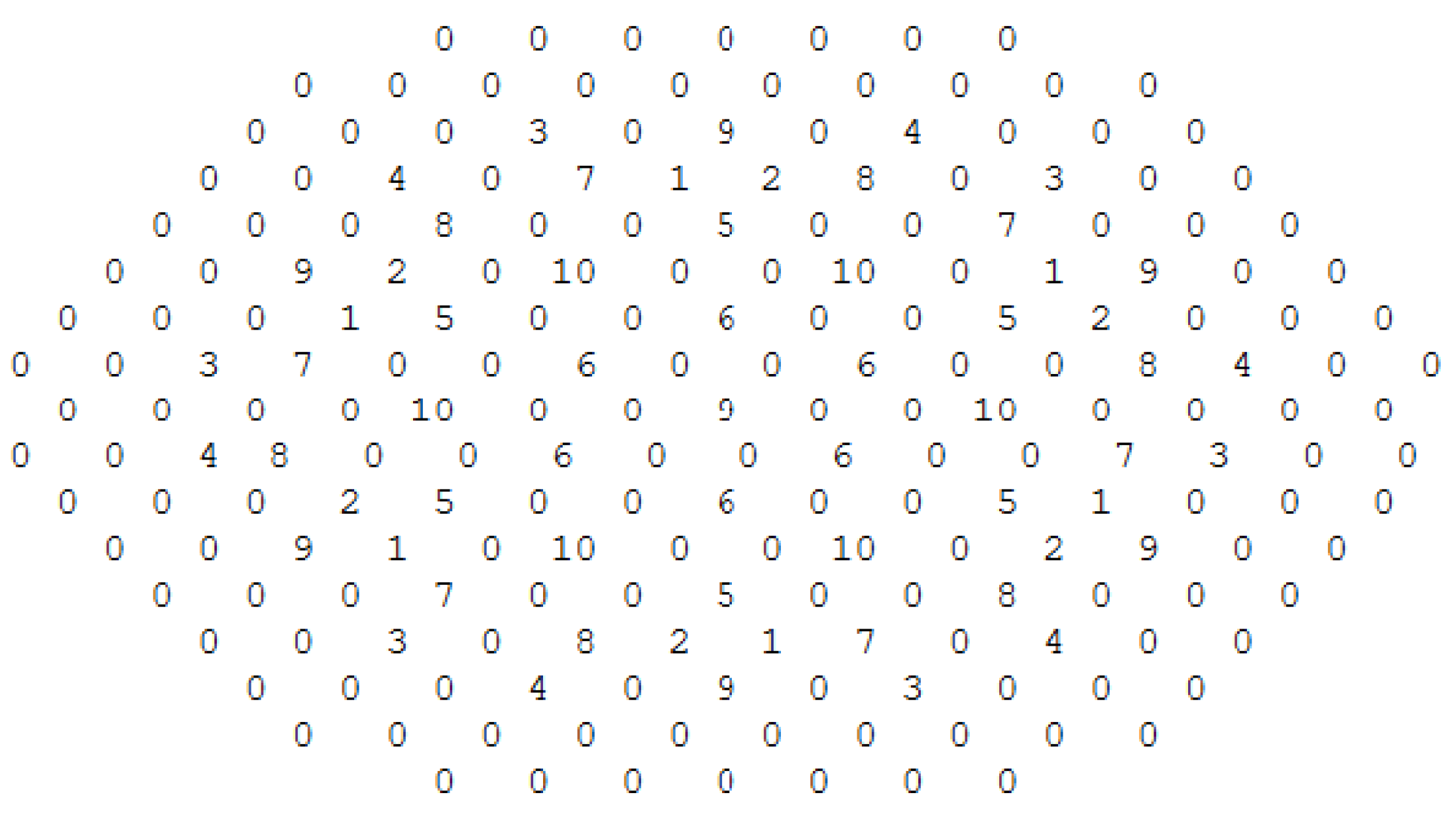 - 40 nodes (with the same dimensions) for the radial reflector.
