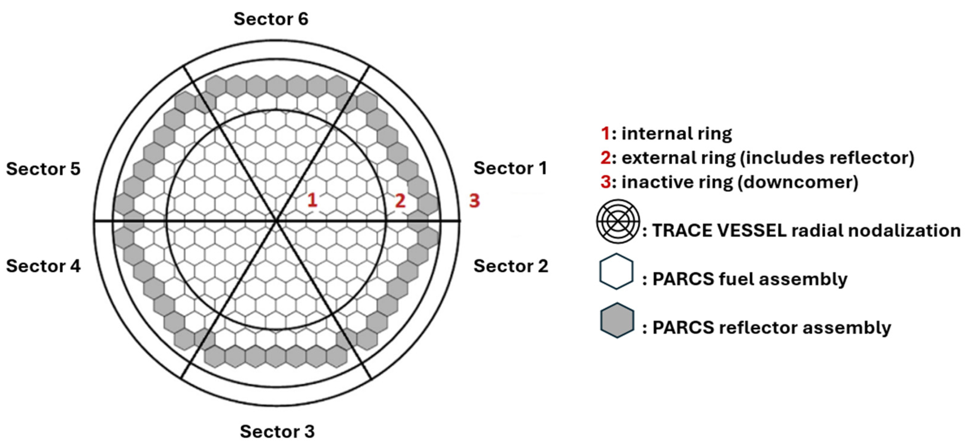 - Nesti, G. PARCS/TRACE Coupling Methodology for Simulating Transient Scenarios in Hexagonal Lattice Reactors. Master’s Thesis, Sapienza University of Rome, Rome, Italy, 2024. [Google Scholar]