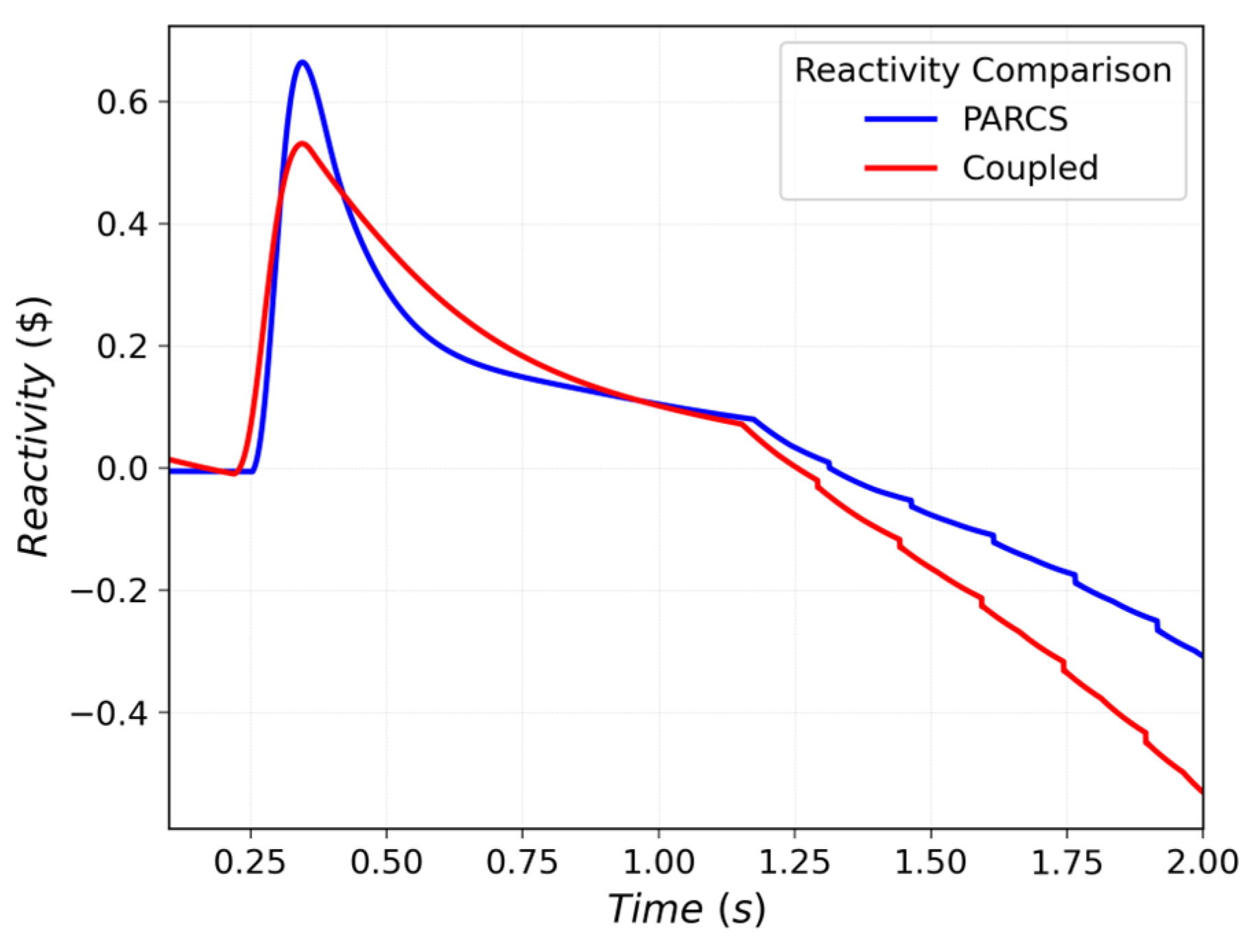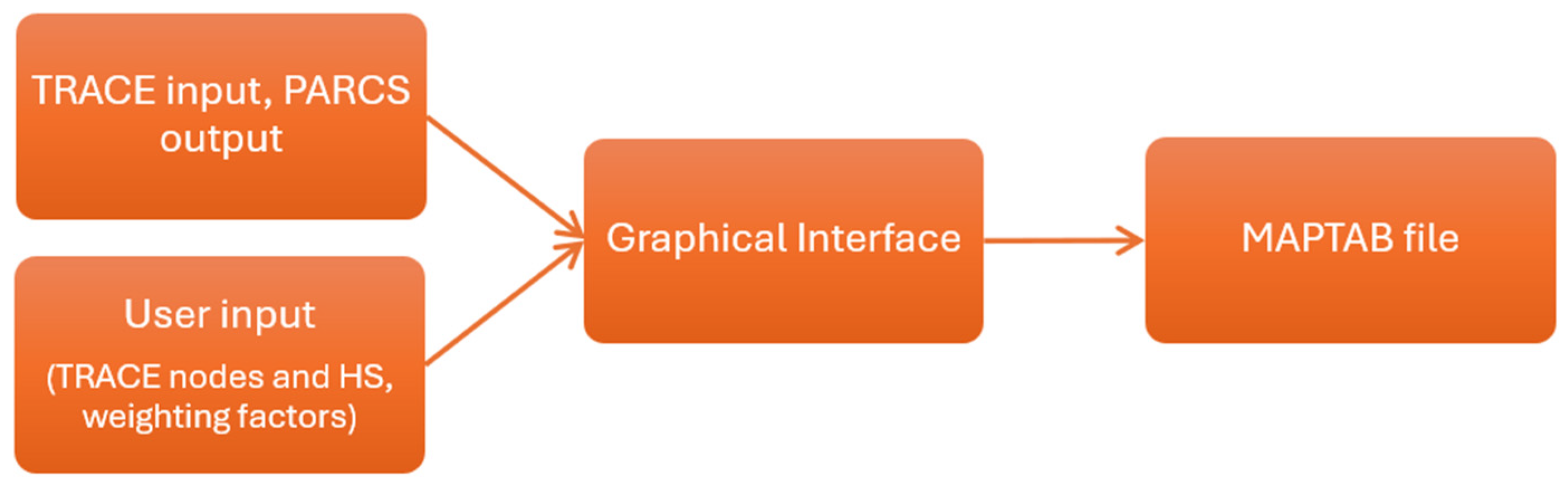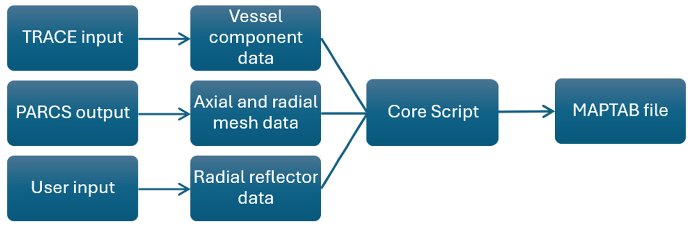 - TRACE computes coolant and fuel properties (e.g., moderator temperature, liquid/vapor density, void fraction, boron concentration, centerline and surface temperature of heat structures). These calculations are based on the power distribution provided by PARCS, which serves as the heat source for heat conduction [4].