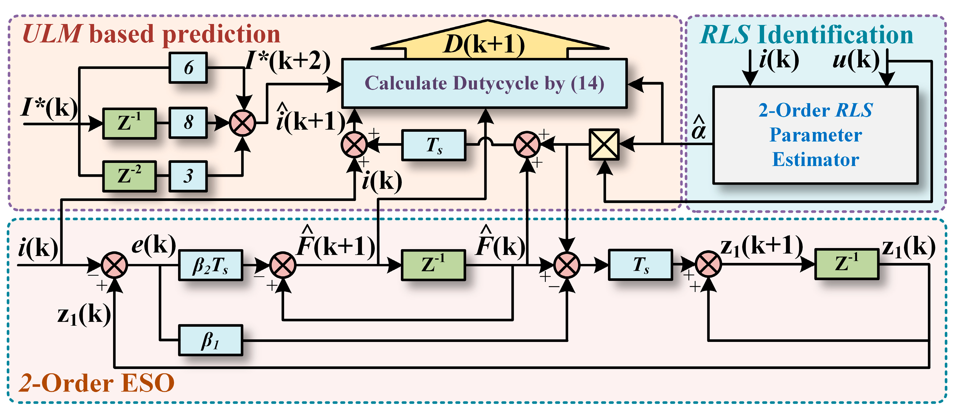 Figure 3, features three fundamental advancements: First, an ESO is utilized to predict the phase current two step ahead. Second, an improved RLS algorithm is used to identify system parameter. Third, the bus current is estimated and incorporated into the voltage control loop through AFC module. The following section provides a detailed description of the proposed strategy.