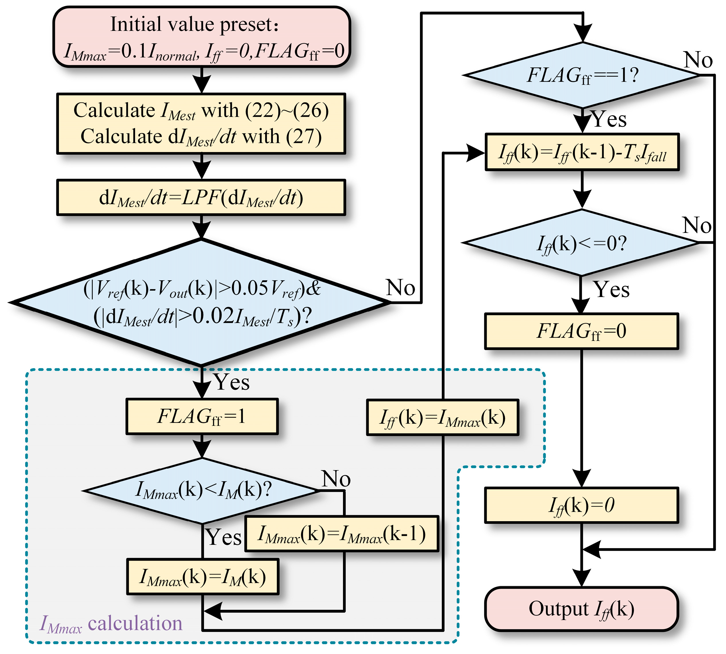IM3 is utilized to compute the feedforward compensation term. This mechanism enables rapid elevation of the reference current within a single control cycle, thereby enhancing the system’s output power. The computational process of the AFC strategy is illustrated in