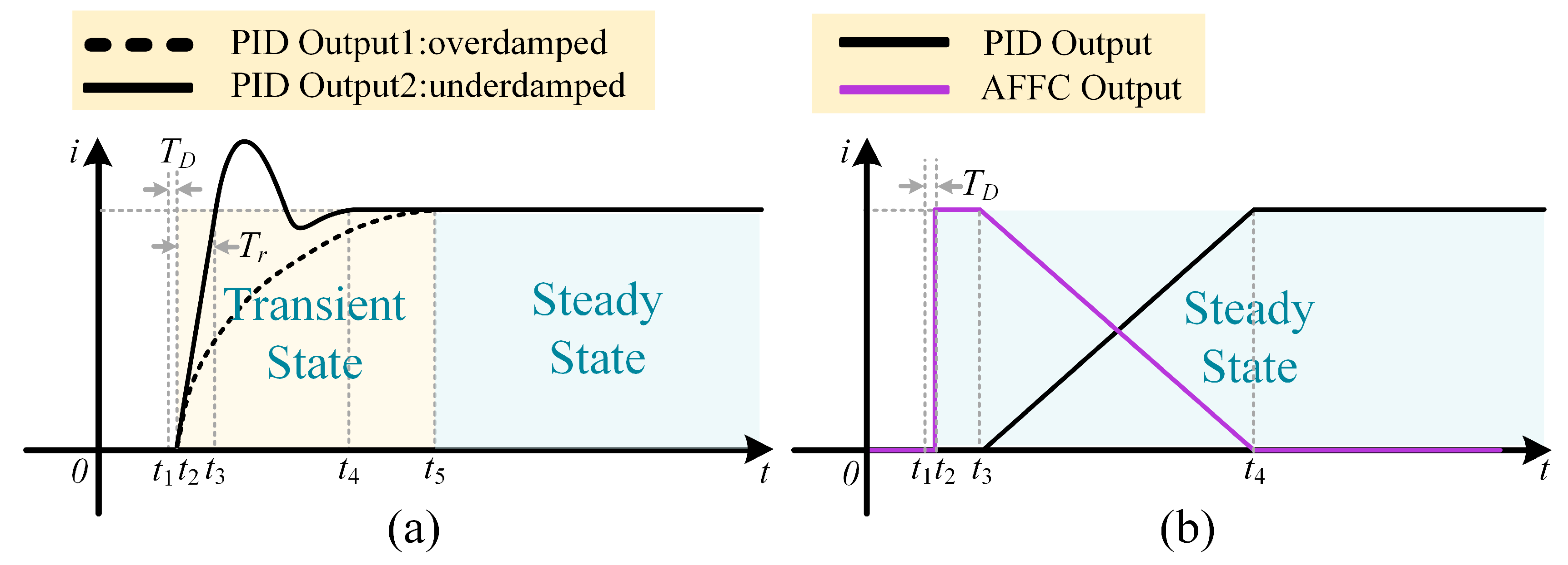 t5. In contrast, the proposed method eliminates delay effects through predictive control and incorporates a combined voltage–current judgment mechanism. This enables immediate activation of the AFC module upon load variation, rapidly adjusting the reference current output with nearly no delay. As a result, the dynamic response and robustness of the system is significantly improved.