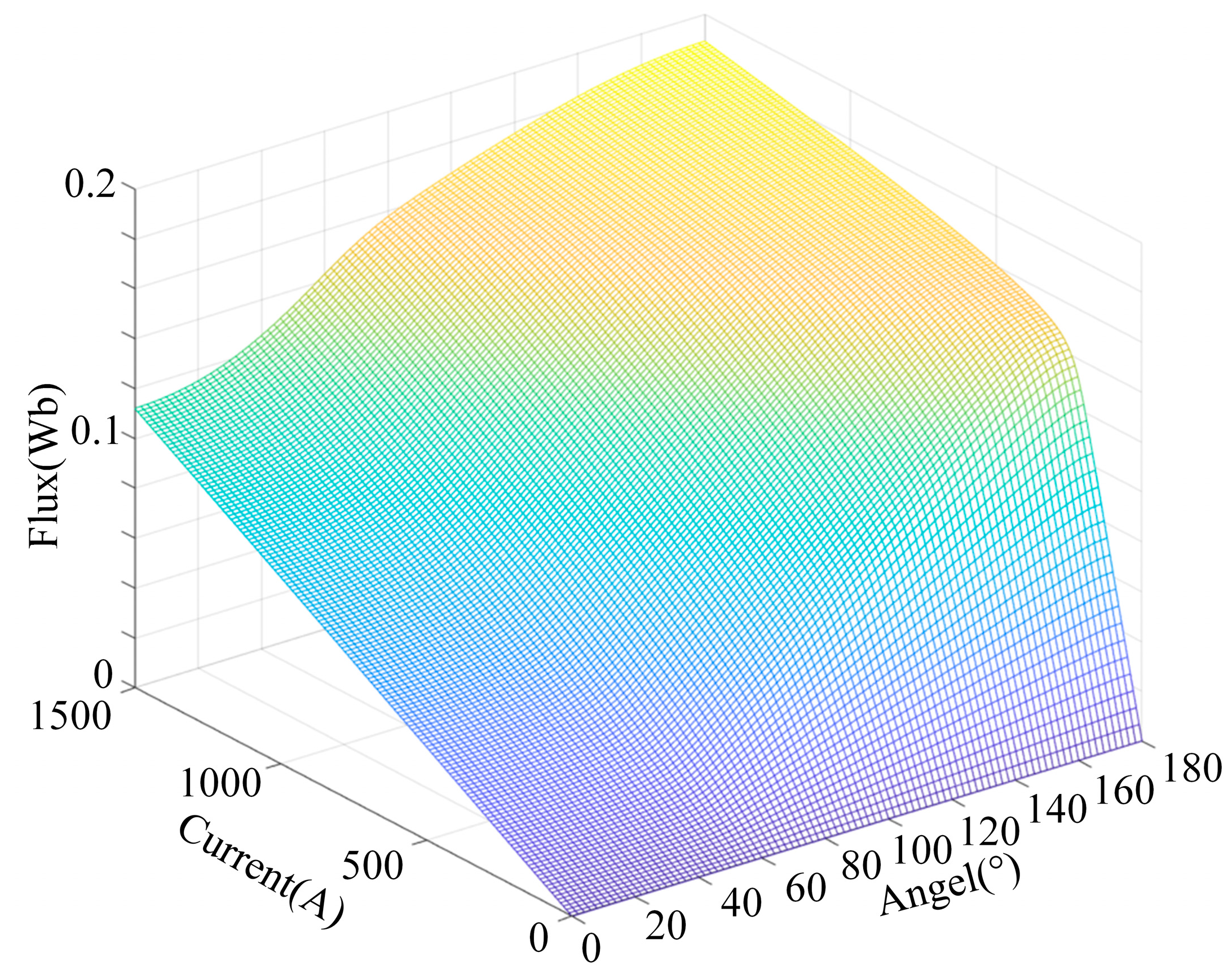 θ) lookup table derived from FEA, and the magnetic flux map is shown in