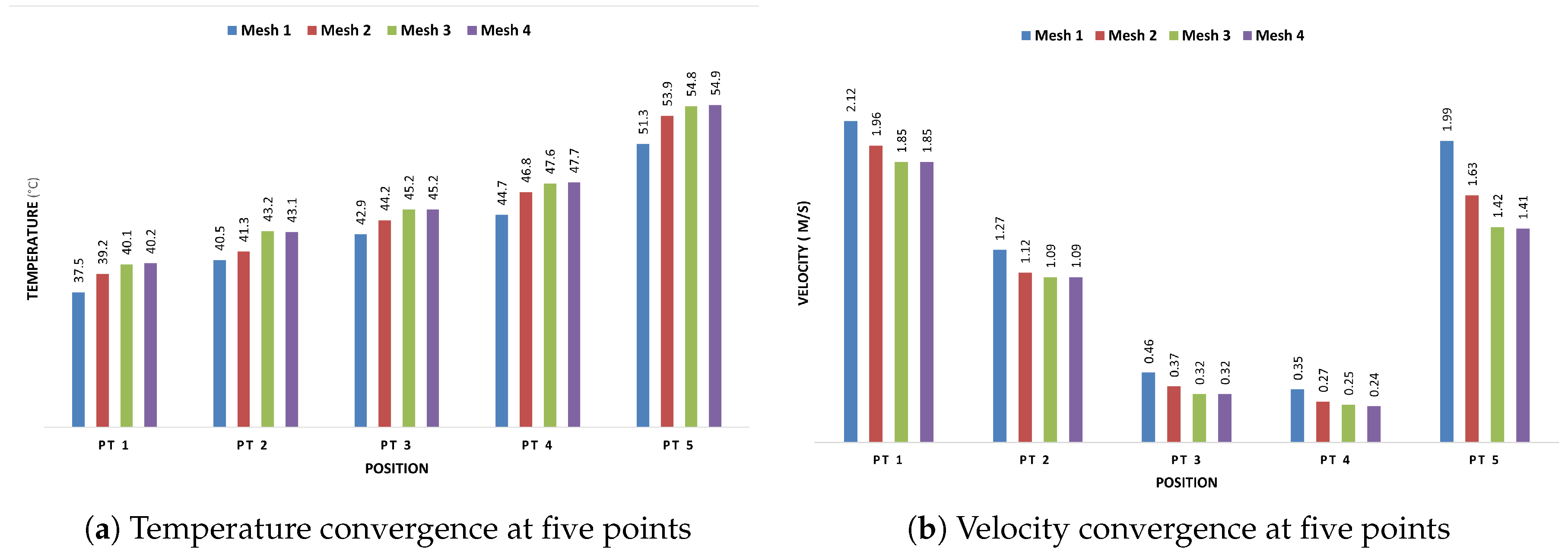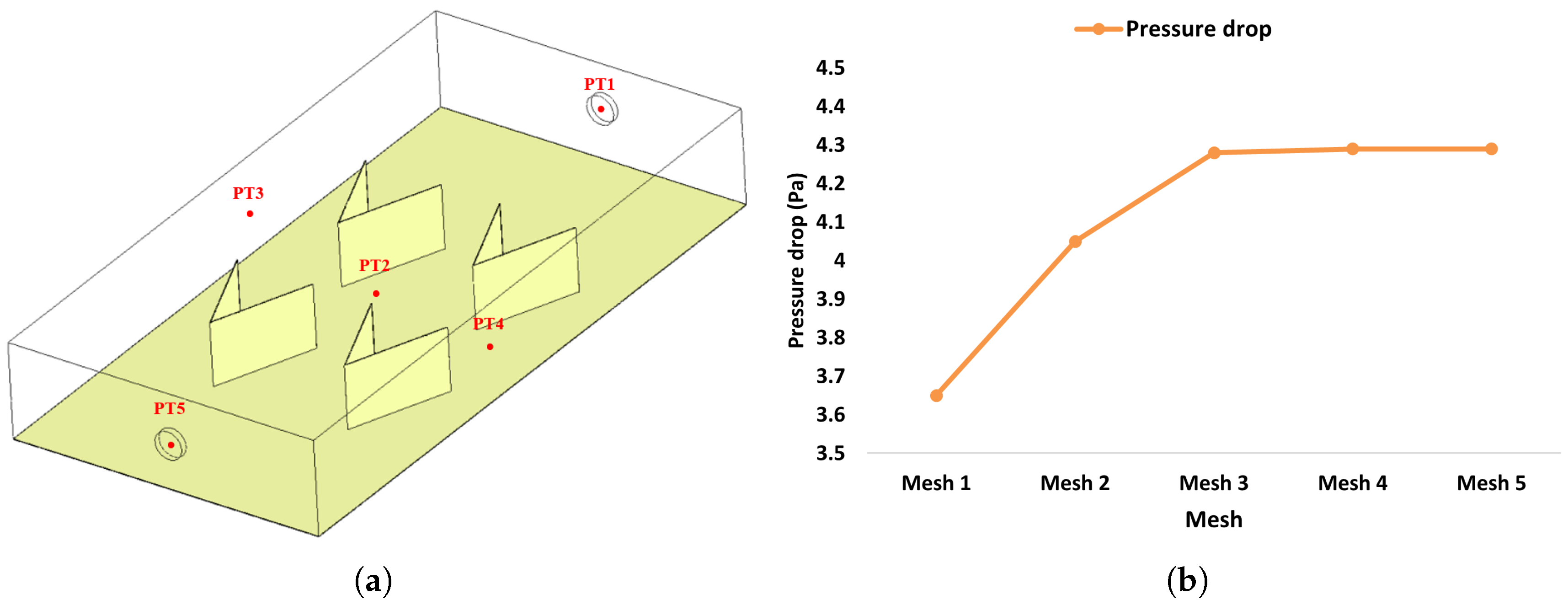 13] used CFD to identify optimal baffle types and numbers, concluding that transverse baffles significantly improved heat transfer coefficients and efficiency, with N = 6 baffles performing best at higher flow rates. Together, these studies demonstrate that geometric optimization is essential for enhancing SAH efficiency.